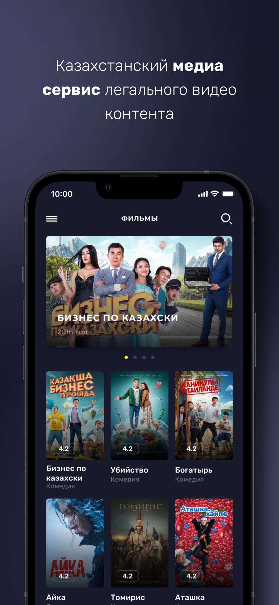 Popular domestic and foreign films, cartoons and TV shows in Kazakh and Russian languages;