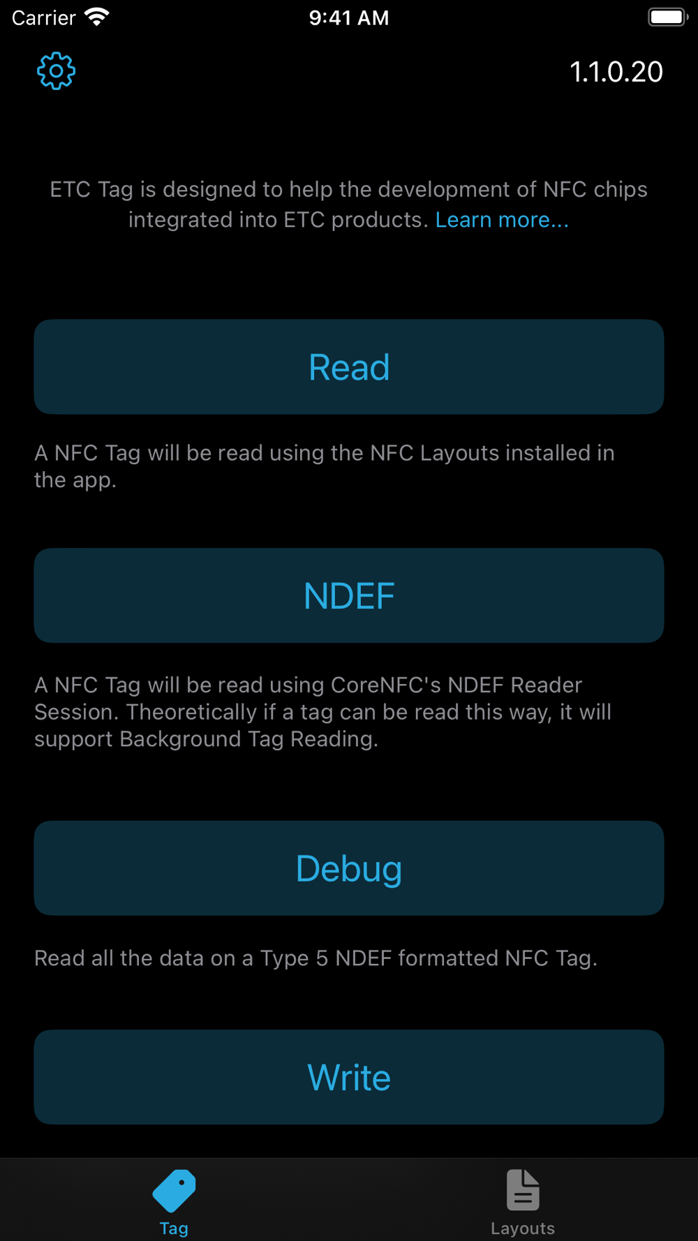 ETC Tag is designed to help the development of NFC chips integrated into ETC products and to promote a standardised approach across the company to enable interoperability between our lighting fixtures and mobile applications. The layout of data on a NFC chip can differ substantially between our products. ETC Tag helps to verify that our NFC Layout Advertisement System is correctly implemented within manufacturing as well as allows us to develop further NFC layouts for future products.