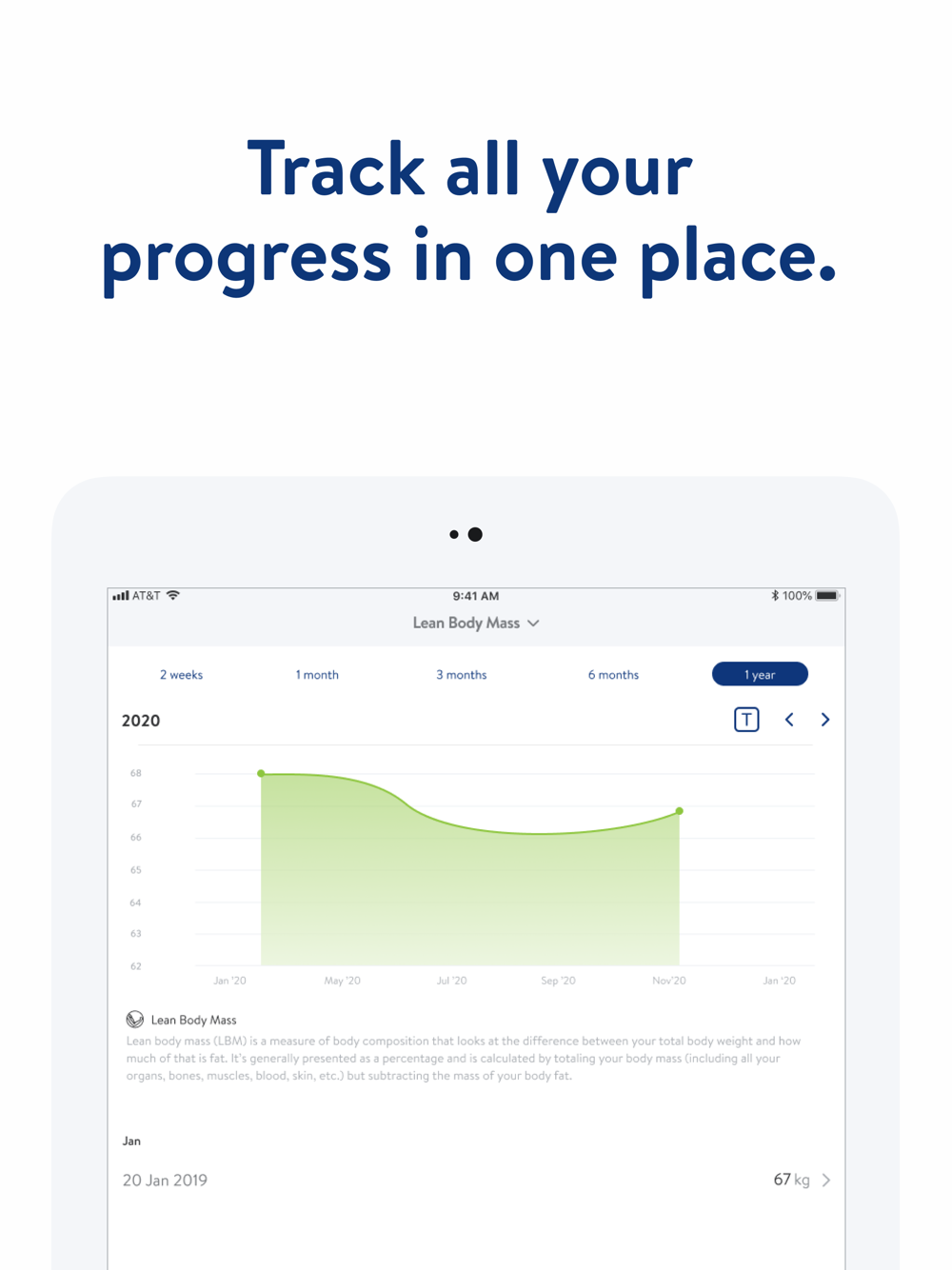 - Connect to wearable devices like Apple Watch (synced to Health app), Fitbit and Withings to sync body stats instantly