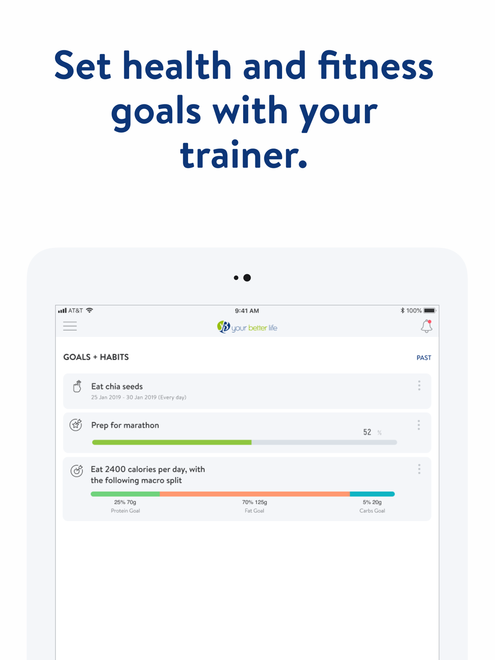 With the Your Better Life Coach App, you can start tracking your workouts and meals, measuring results, and achieving your fitness goals, all with the help of your personal trainer.