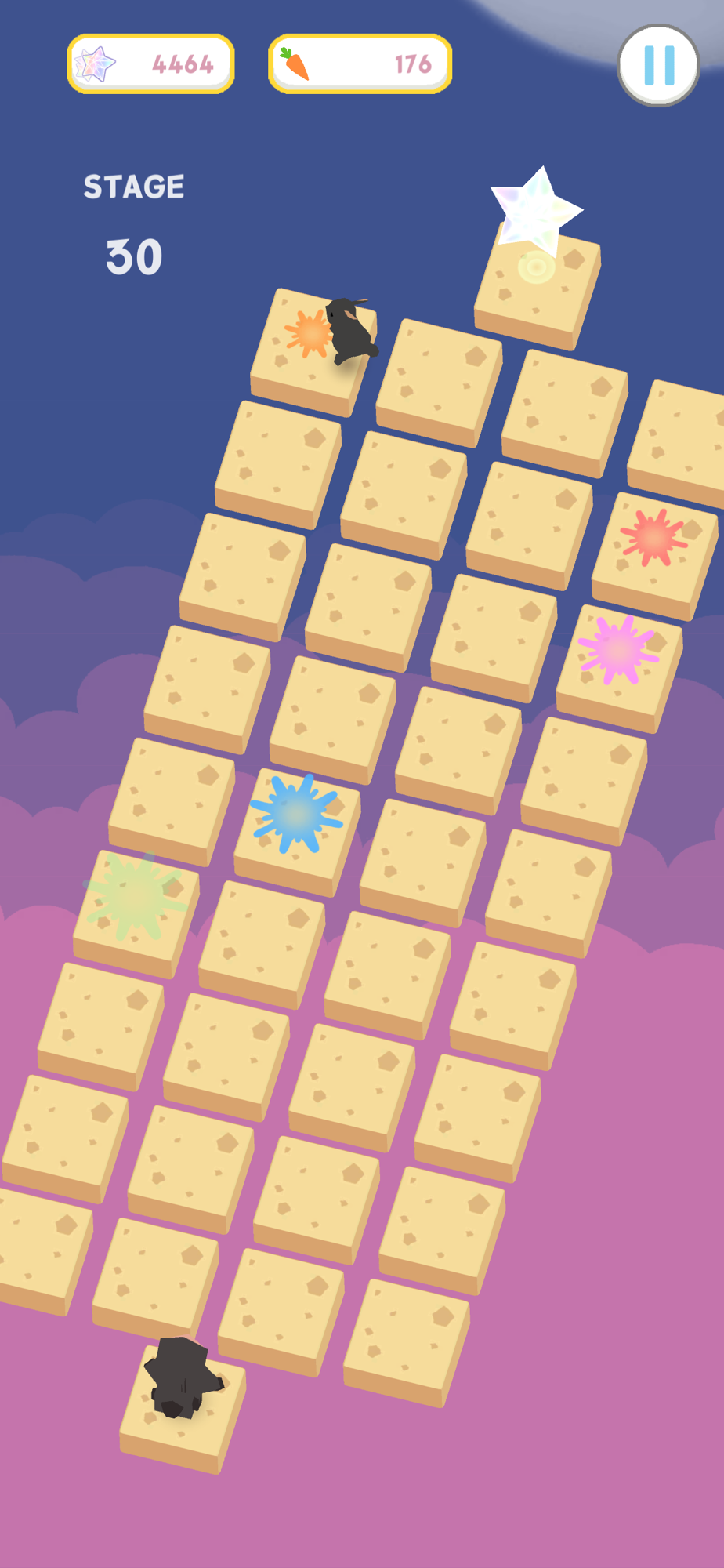 ③ Don't worry if you miss your tile or fall by mistake! If you use carrots, rabbits will help you.