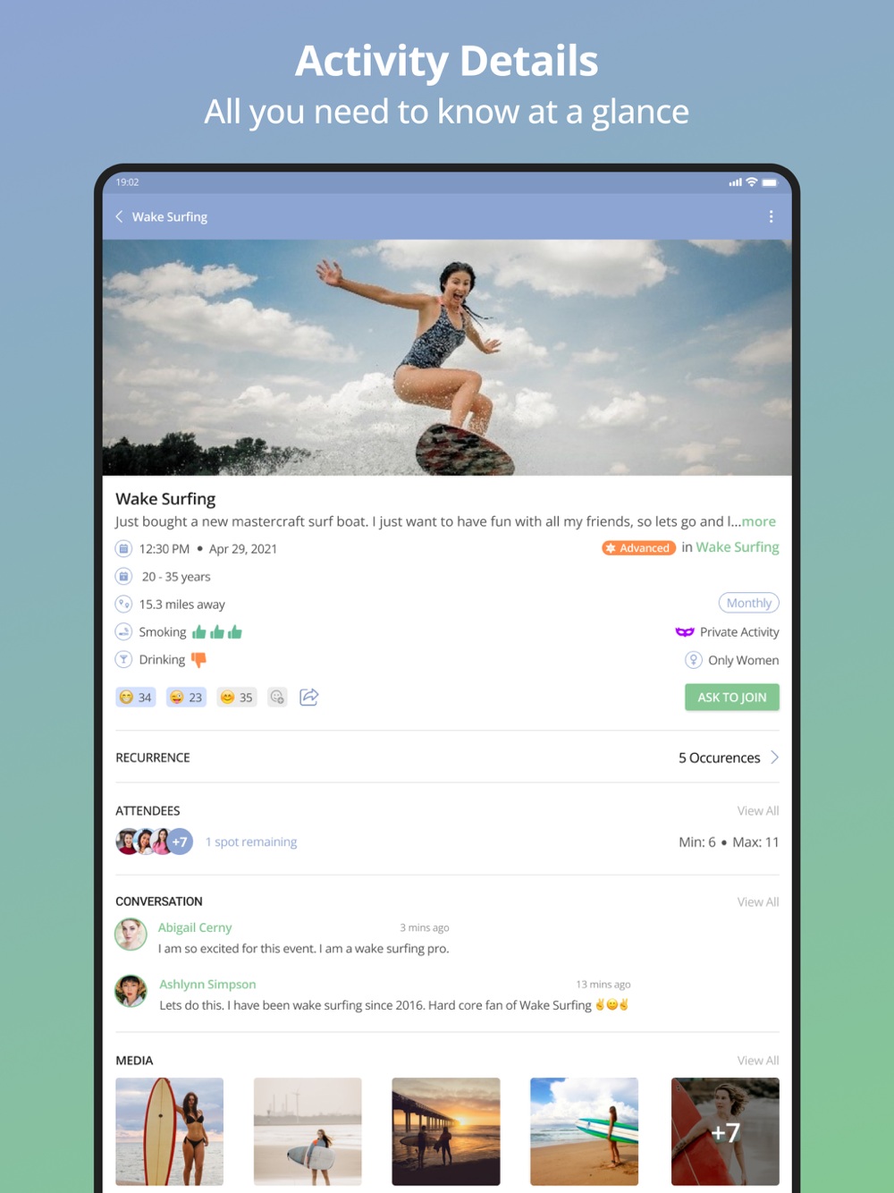 3) ACTIVITY RECURRENCE: Share your season schedule in one moment.
