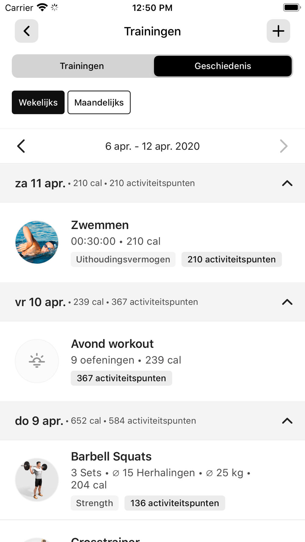 Leg al je workout-gegevens vast vanuit fitnessapparatuur of voer deze handmatig in voor een compleet overzicht.