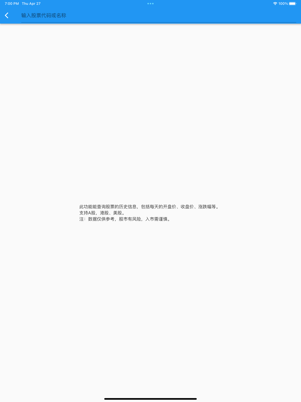 Stock information query: Support querying the historical quotes of major stock markets, designed for Voice Over, view efficiently and conveniently.