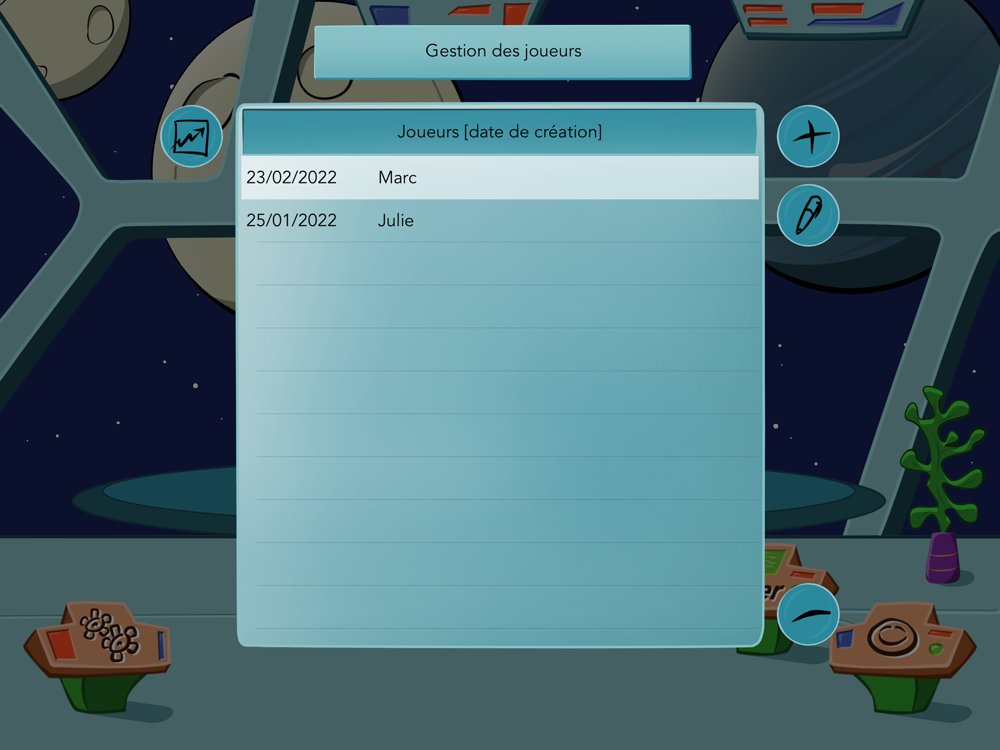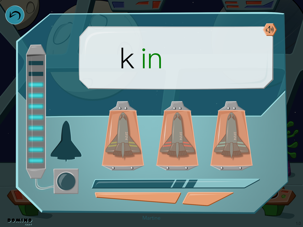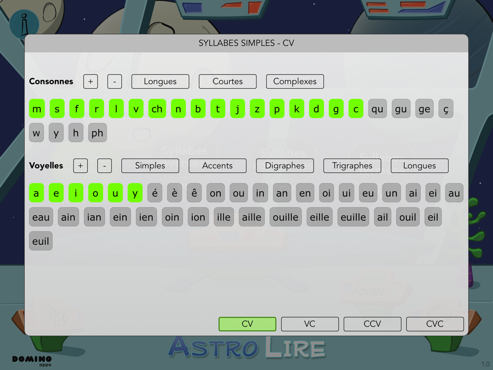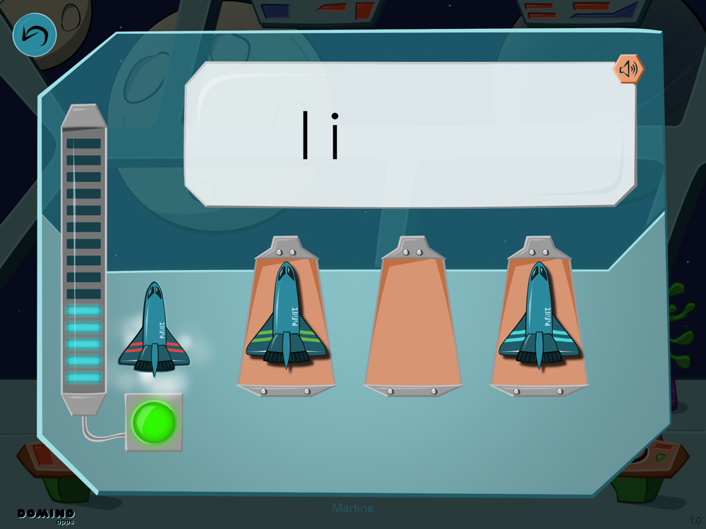 En quelques clics, l’enfant lit des syllabes avec les lettres que vous avez choisies, tout en s’amusant sur le thème de l’espace.