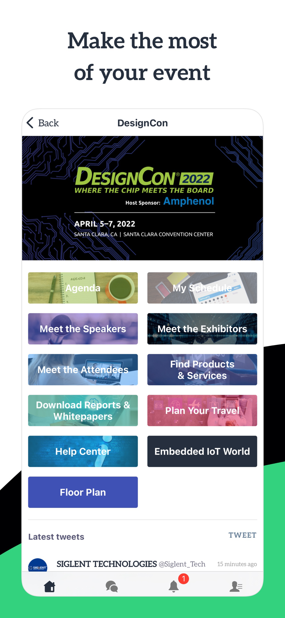 Use the app to build your personalized agenda, interact with floorplans, check out other attendees, get notifications about upcoming sessions, exclusive offers, and more.