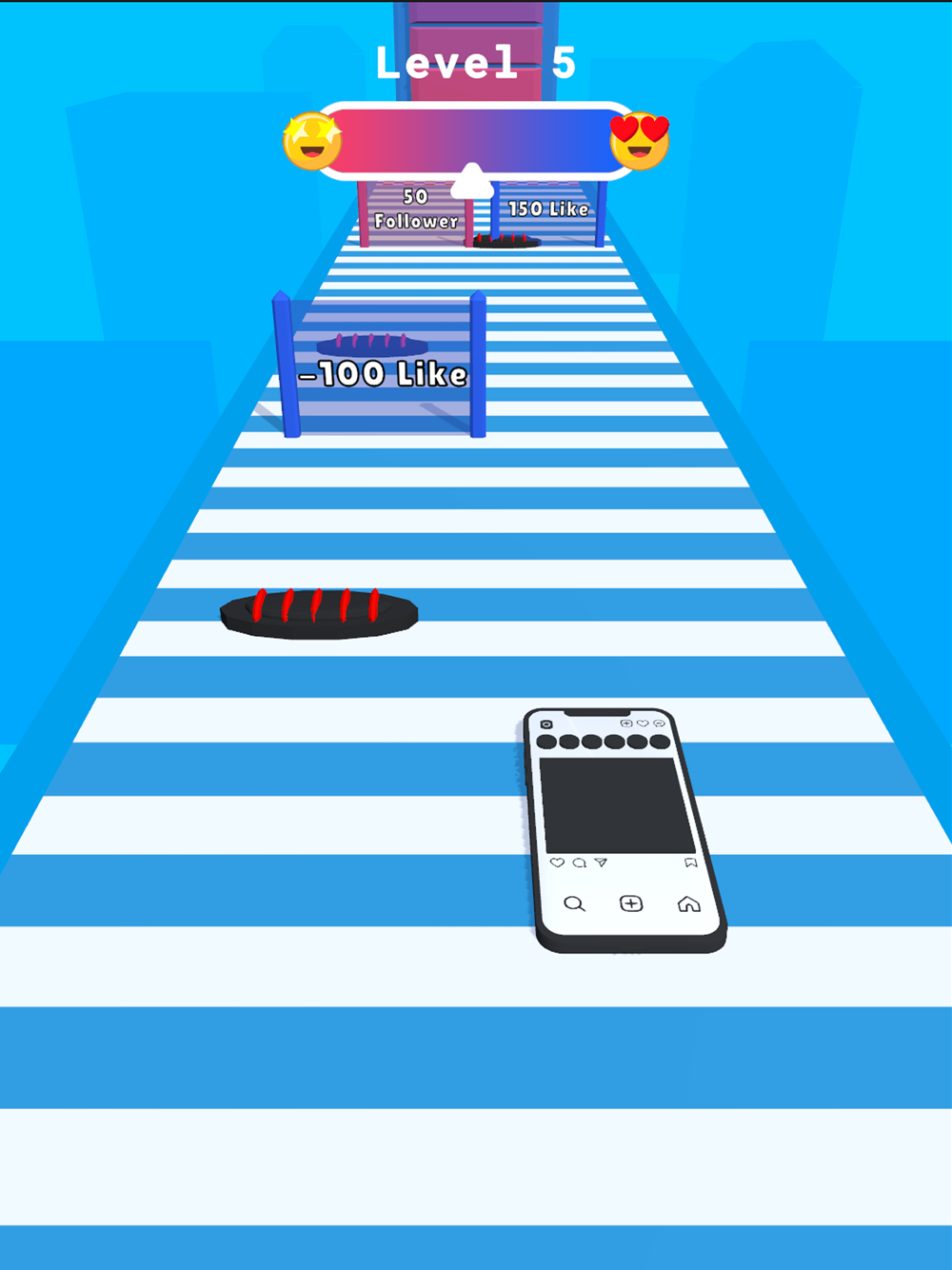 Swipe to choose the doors and collect all of the likes and followers! Keep them in balance to grow. The more you stay in balance, the more you have fame!