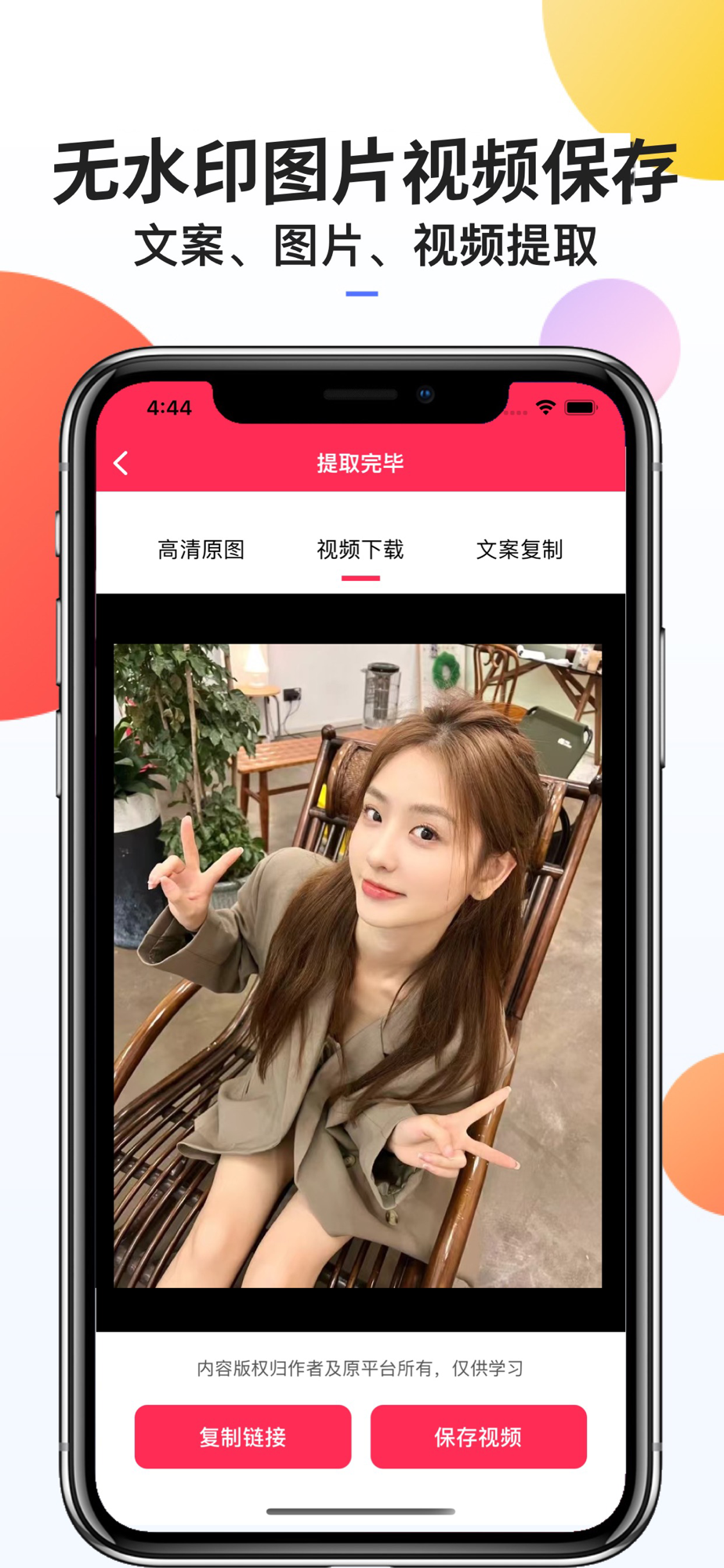 1.通过复制网页笔记链接,快速提取图片、视频、文案以供下载