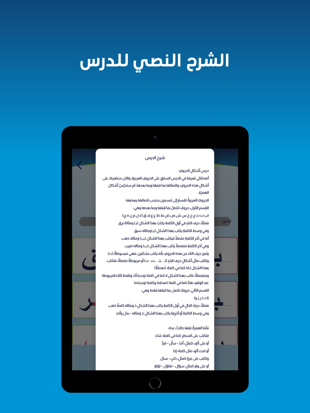 تم إعداد هذا التطبيق للناطقين بالعربية وغيرها، لمساعدتهم في تعلم اللغة العربية- بدءاً من تعلم الحروف، وانتهاء بإتقان اللغة العربية.