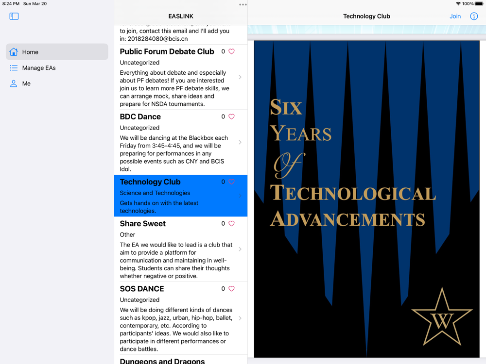 EASLINK makes signing up EAs at BCIS a lot easier than before. Find EAs you like, then simply join it with the press of a button. You can also start your own EA by filling out some basic informations, then you’re ready to go!