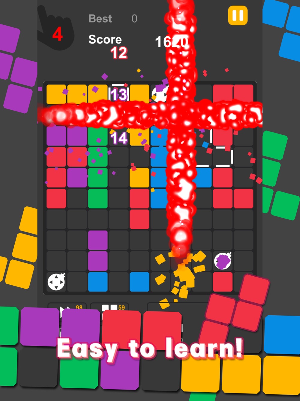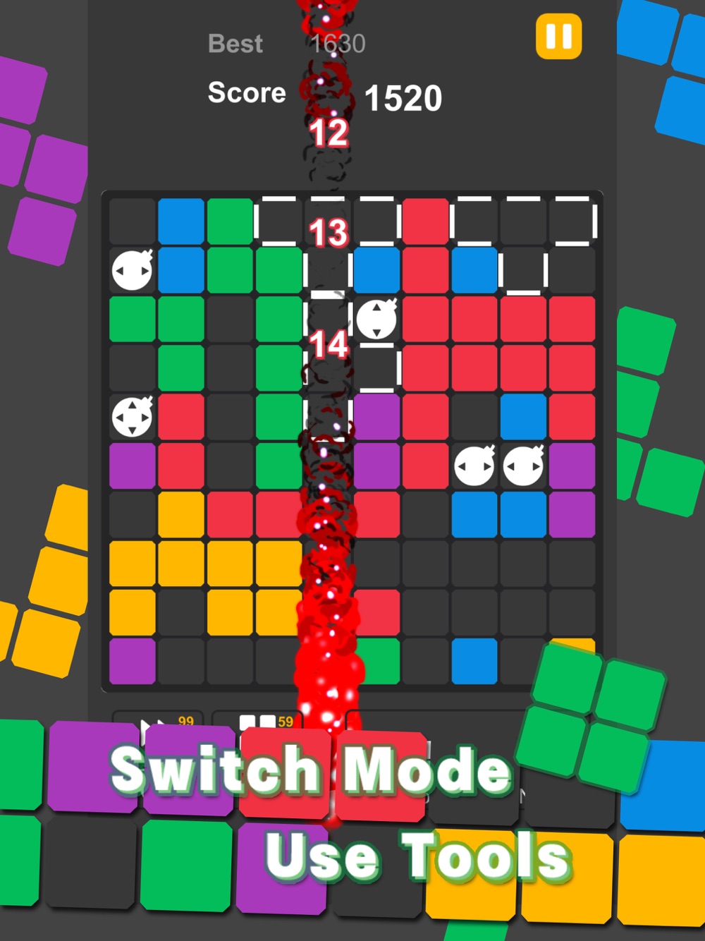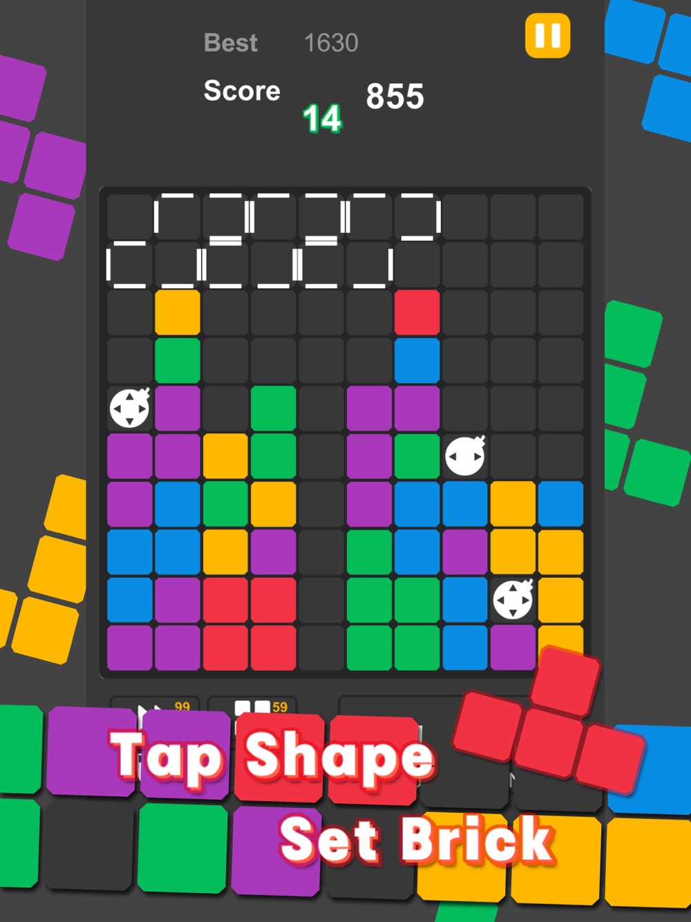 Click on the brick shape composed of dotted lines in the screen and fill in the bricks. Fill the whole row or column with bricks one by one to eliminate bricks and obtain points.