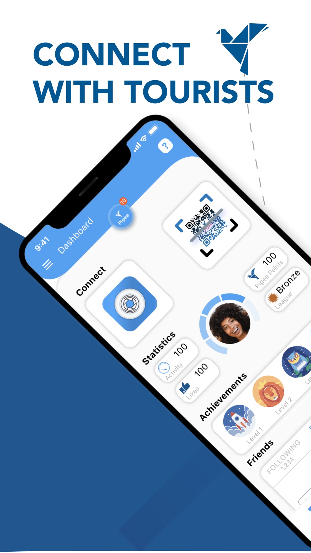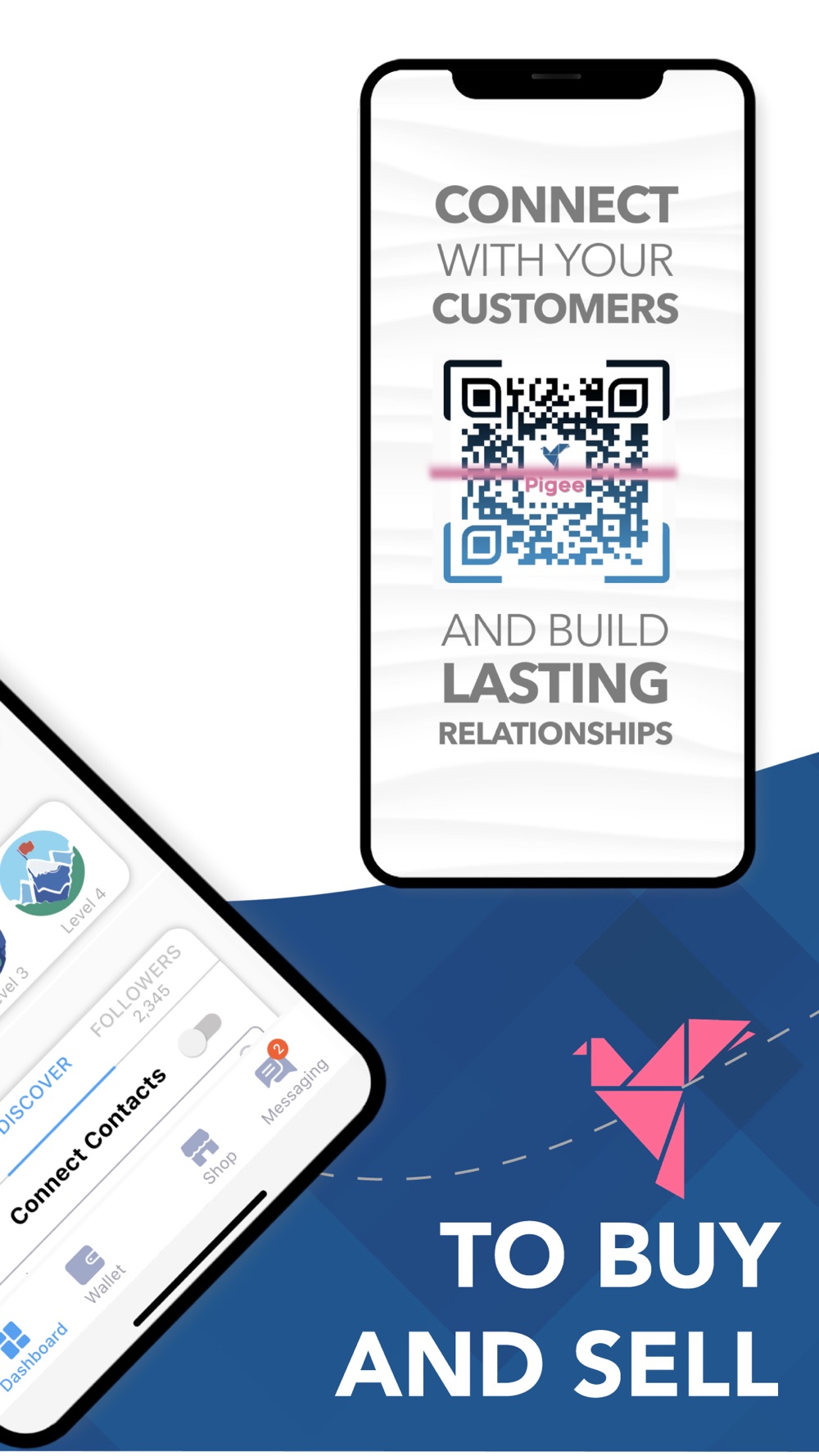 The app can switch between Seller or Shopper mode. Users connect in real life using their unique QR code or GPS location.