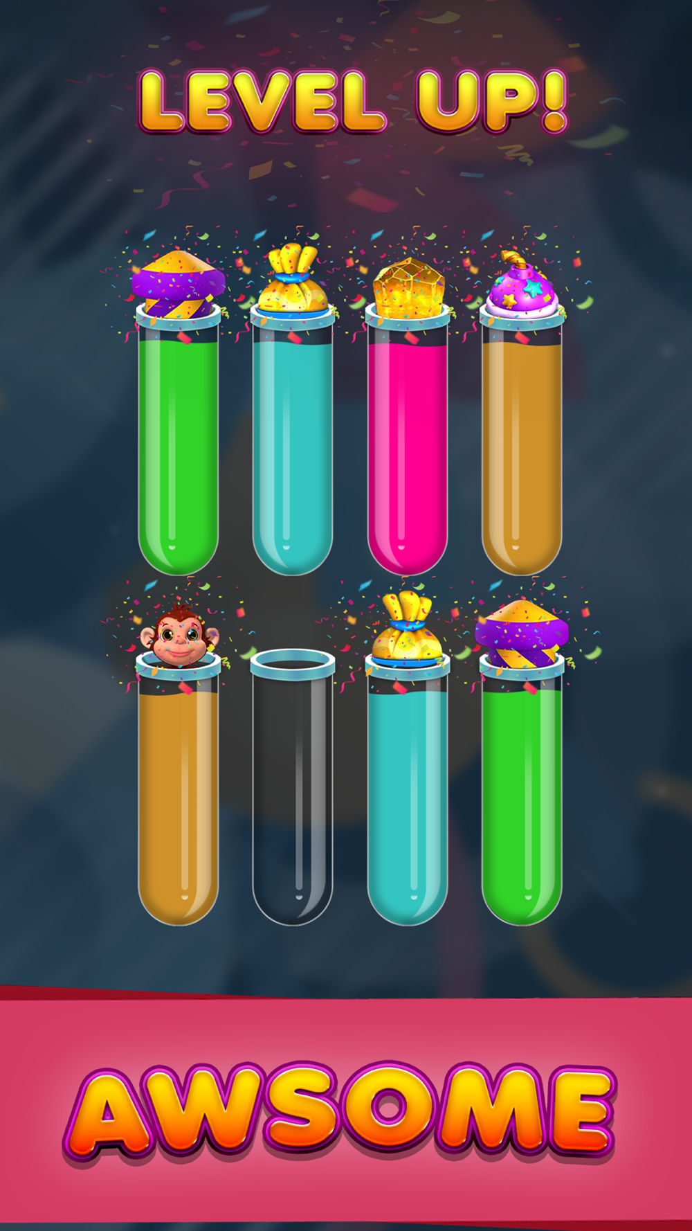 Liquid sort puzzles are not as easy watch the color use your technique and steps to solve the puzzle games. If you are looking for puzzle games for kids or puzzle games free then enjoy this relaxing game which is quite similar to the science game or shake games. Sort puzzle complete the level by sort water and unlocking the sort watercolor puzzle levels. Have you experienced the sorting games before which helps you to train your brain? This water bottle, water color game will train your brain more than 10 thousands water puzzle games level designed, experience the water sort and win the water sort puzzle levels and become sortpuz expert through this water sort colour games.