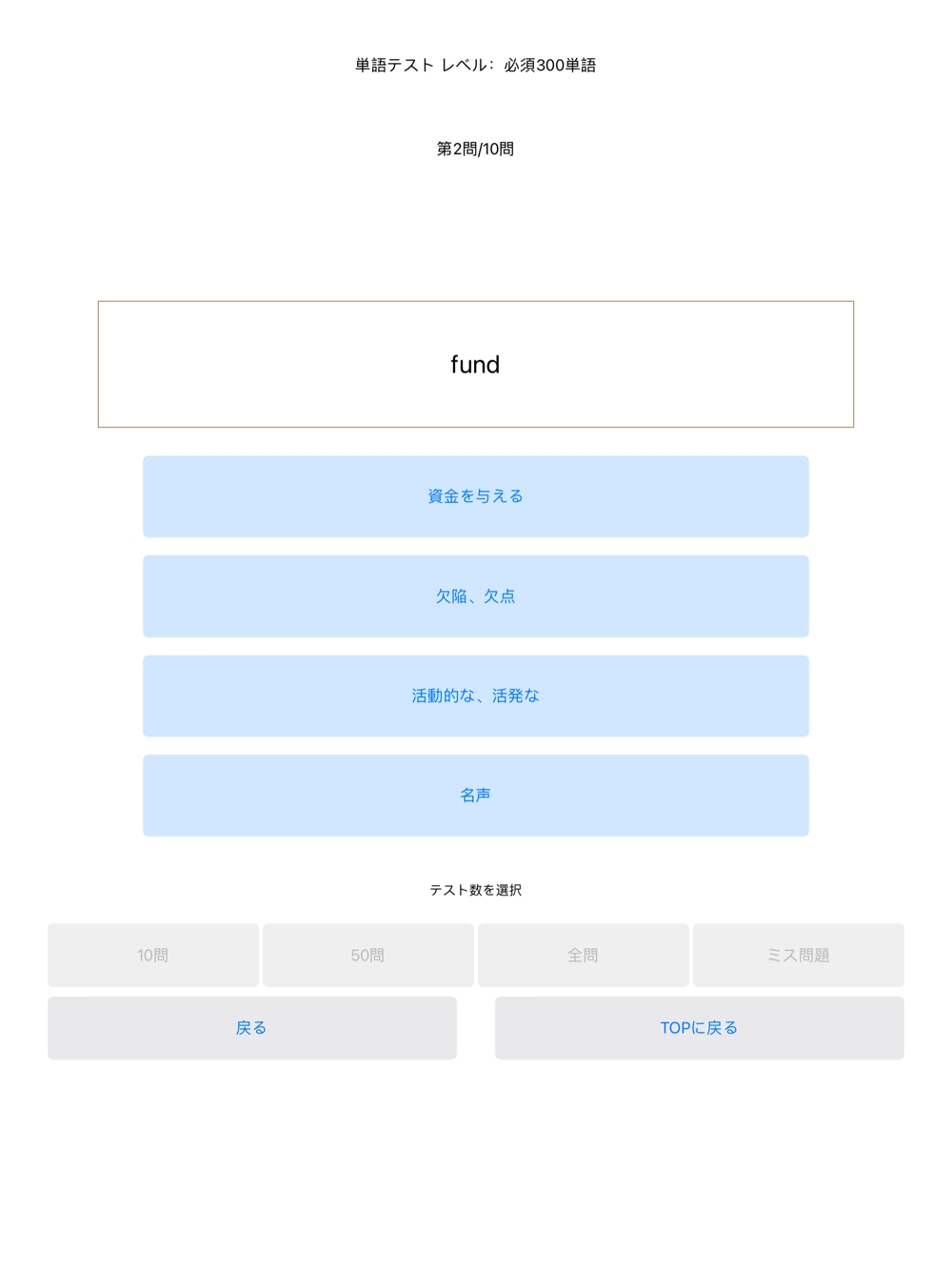 ・単語テストで記憶力を強化。間違ったものだけ効率よく学習。