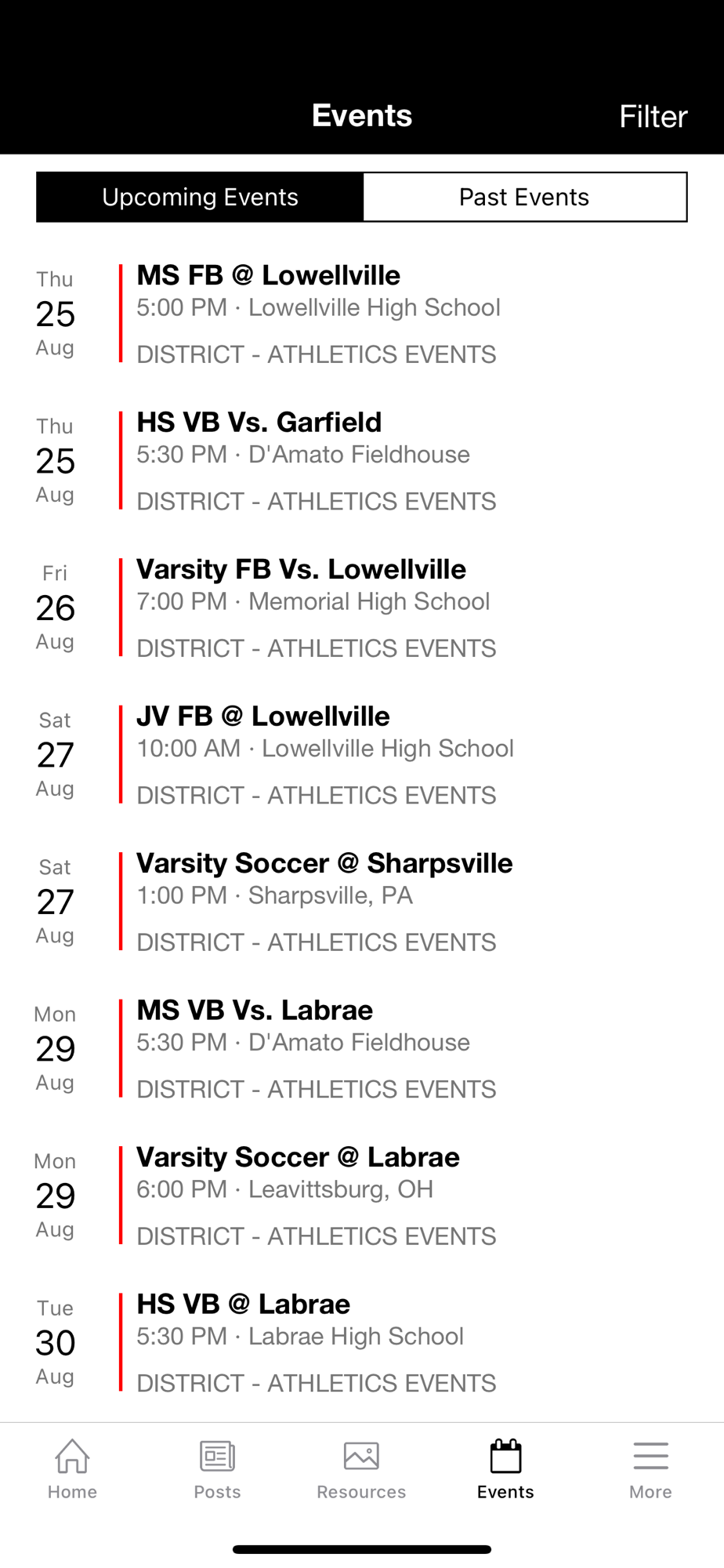 - Review athletic event details, including opponents, game results, recap commentaries, and more