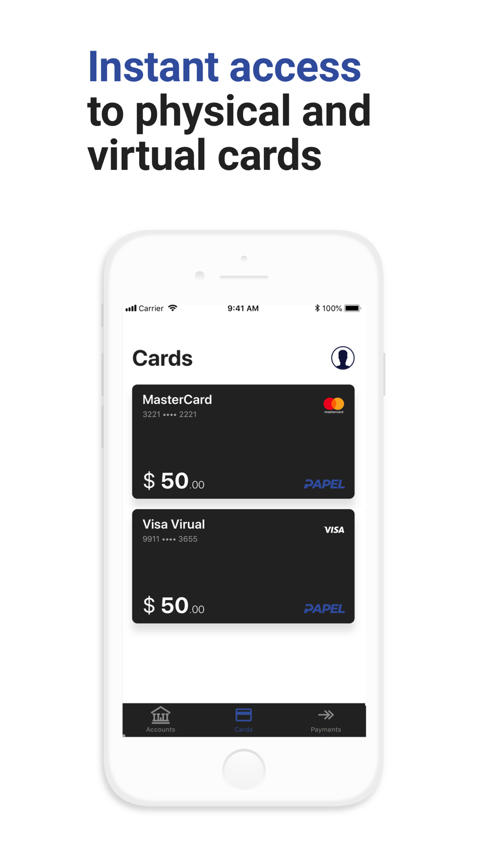 PAPEL’s white-label mobile app for card issuers provides easy and secure access to card information, as well as a wide range of card services. We achieve great customer experience through biometric authentication for instant online card payments and the easy provisioning of cards to mobile payment wallets.