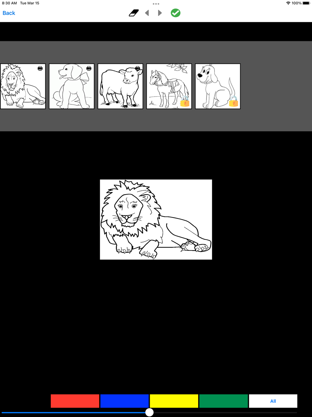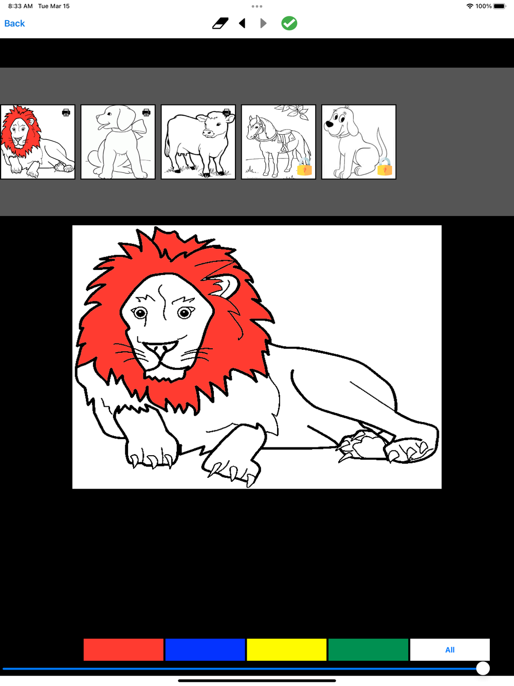 You can fill with a tap, or paint with strokes. There is an unlimited colour to choose and available.