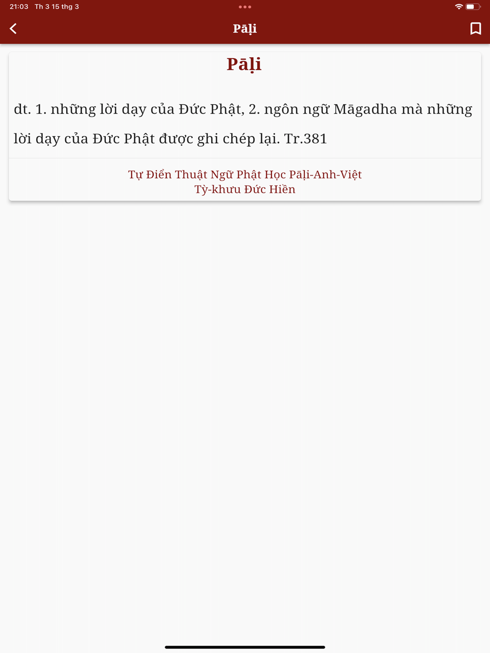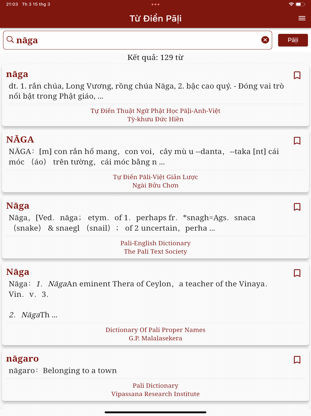 - Có thể tìm kiếm từ Pāḷi hoặc Việt không dấu.