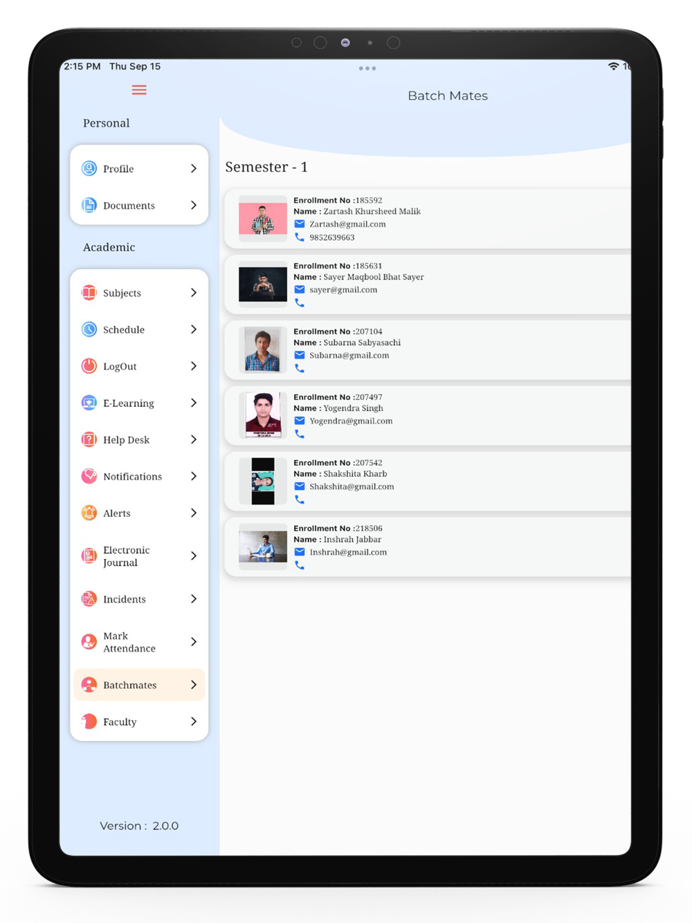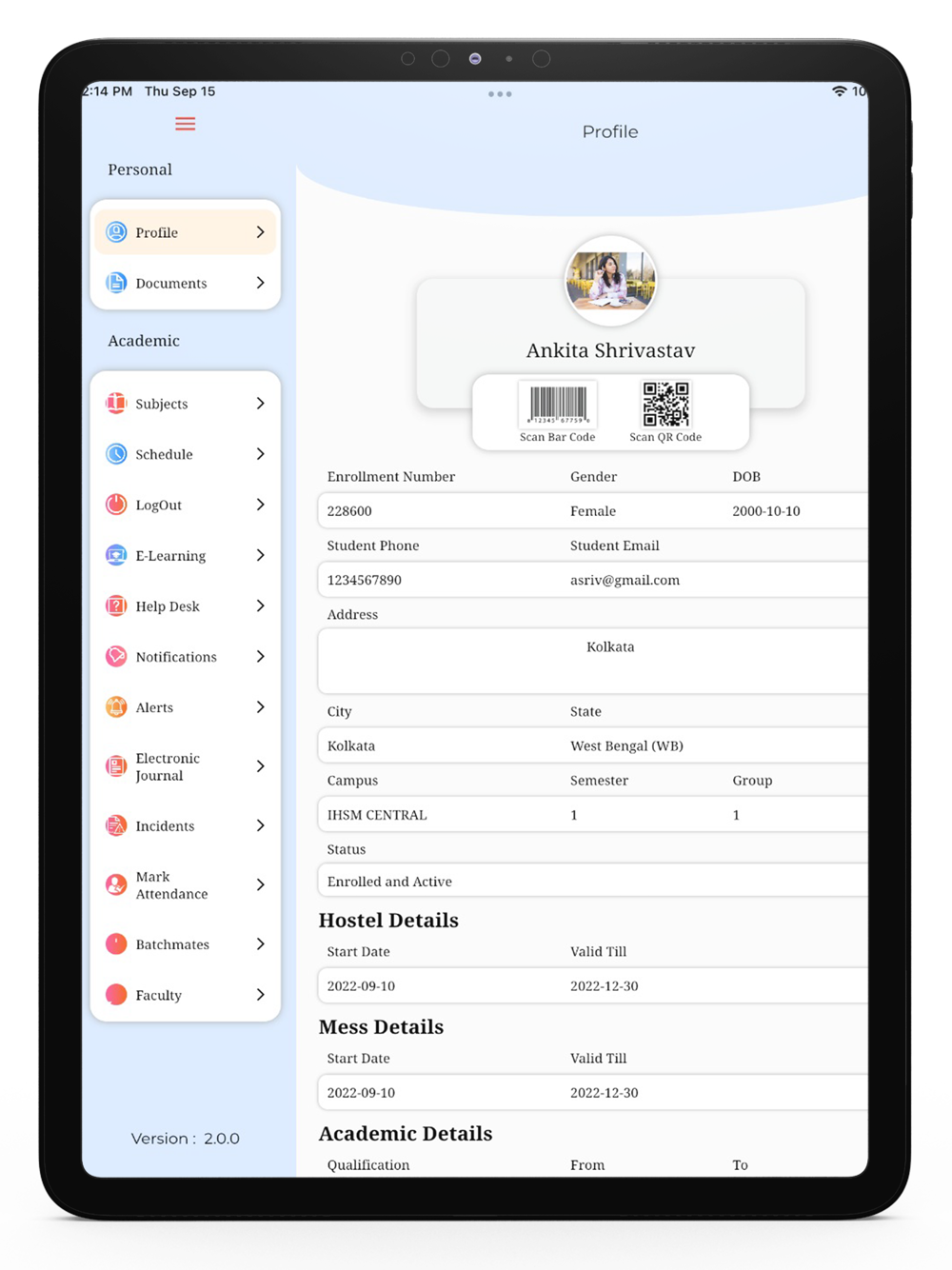 The application allows a set of facilities for university students. With the help of this application, the student can review their personal information and the submitted documents, among other application facilities. Additionally, the student can choose to look at the semester's subjects. With the E-learning option, the application also provides the opportunity for online education. The Helpdesk option enables the student to address any complaints. Any new details will be available under the Notifications option, and any university-related news will be accessible under the Electronic Journal. This application allows students to register their attendance and discover information about their faculty and other batchmates.