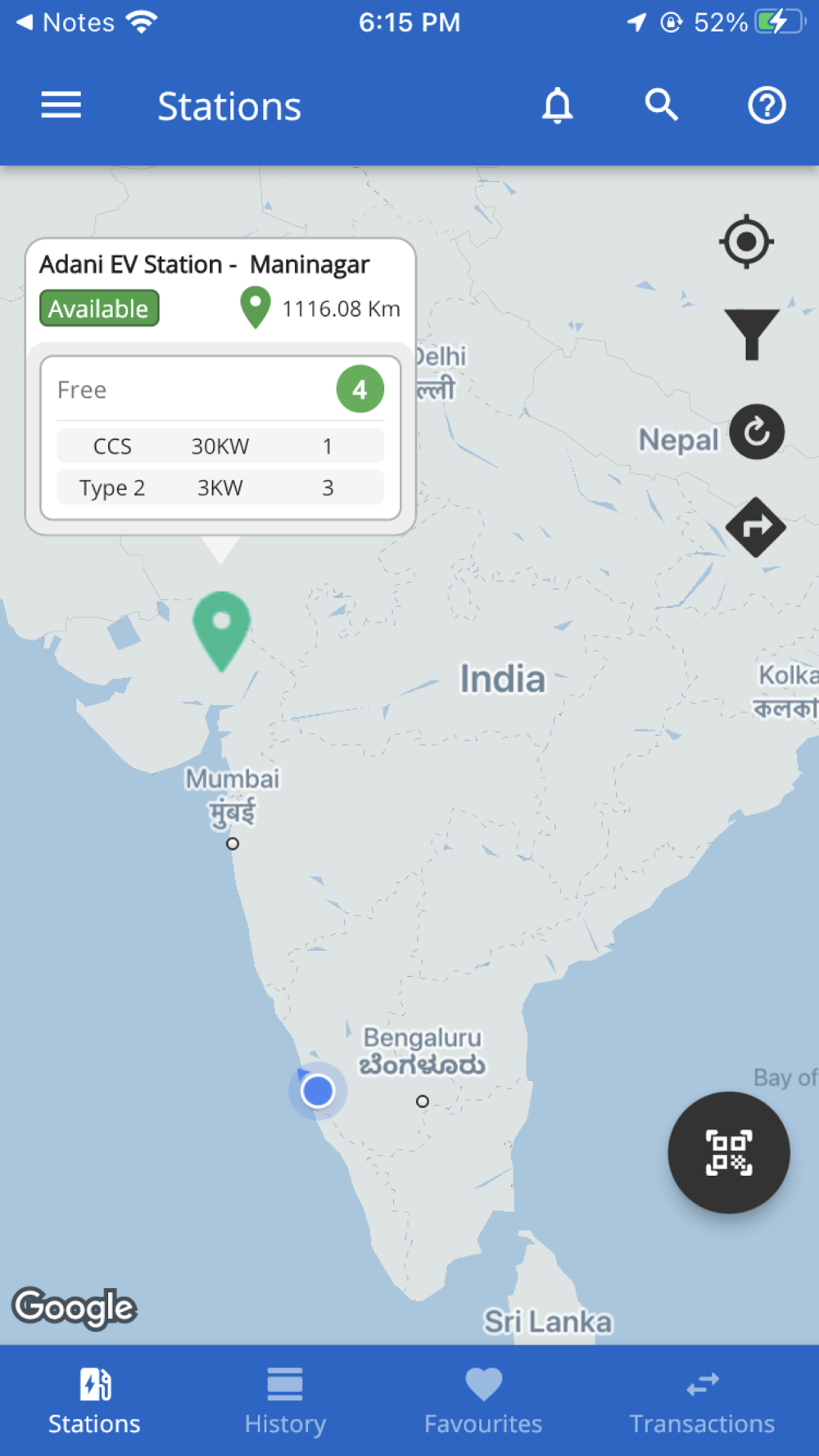. You can search for a particular location and all charging stations in that location will be displayed on the map
