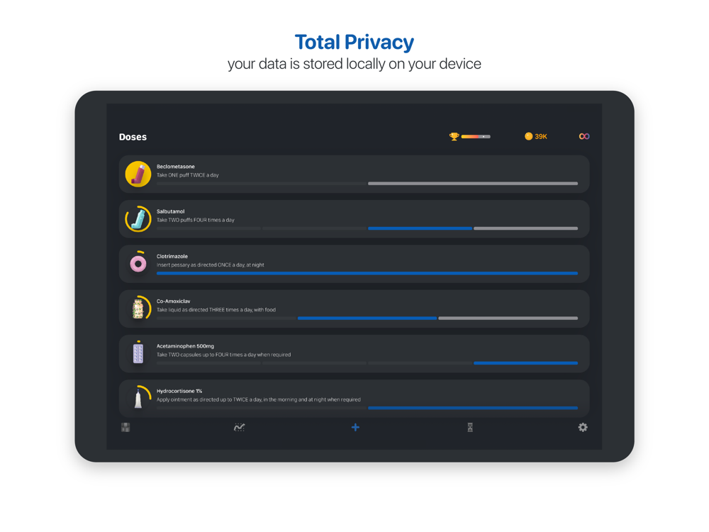 - Track as many medications and supplements as you like