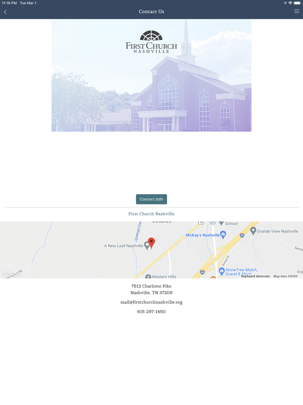 This is for members and guests of First Church Nashville to provided a better on campus and online experience. This allows a direct connection to church information and event information as well and the ability to see our services. This will also allow us to notify our member with push notifications and keep in more consistent contact.