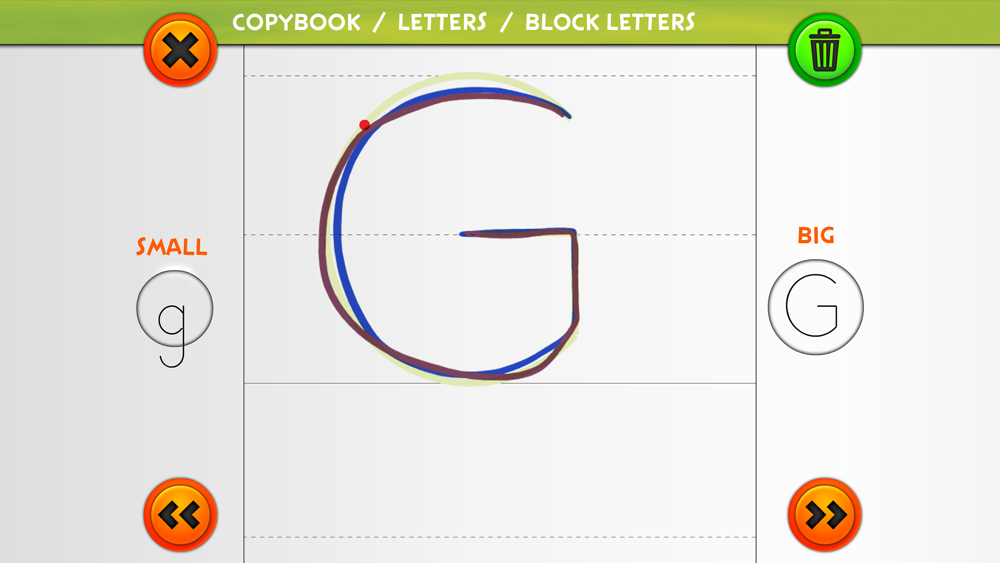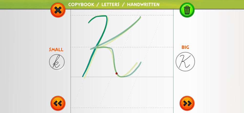 This extensive application for preschool and school children will help them in correctly writing English alphabet and numerals. The application contains exercises for children of preschool age to improve their graphic and motor skills. These may also be used by first-graders in relaxing their hands and wrists. The largest sections of the application are devoted to mastering handwritten and block letters, complete with their small and capital versions. The available auxiliary lines are designed to help children in tracing the correct shape and slant of their letters. Our animated dot indicates whether each line is being drawn correctly, telling children where to start and how to proceed. You will also find lessons in writing numerals. The application comes complete with a game that will reveal whether children really know not only how to write individual letters correctly but also whether they know how to match handwritten and block variants. Writing can be controlled with your finger but we do recommend using for this application a pen for tablets, the so-called stylus, which will also help children to learn how to grip their pen correctly. From now on, it is going to be plain sailing for you that will make your writing so exciting.
