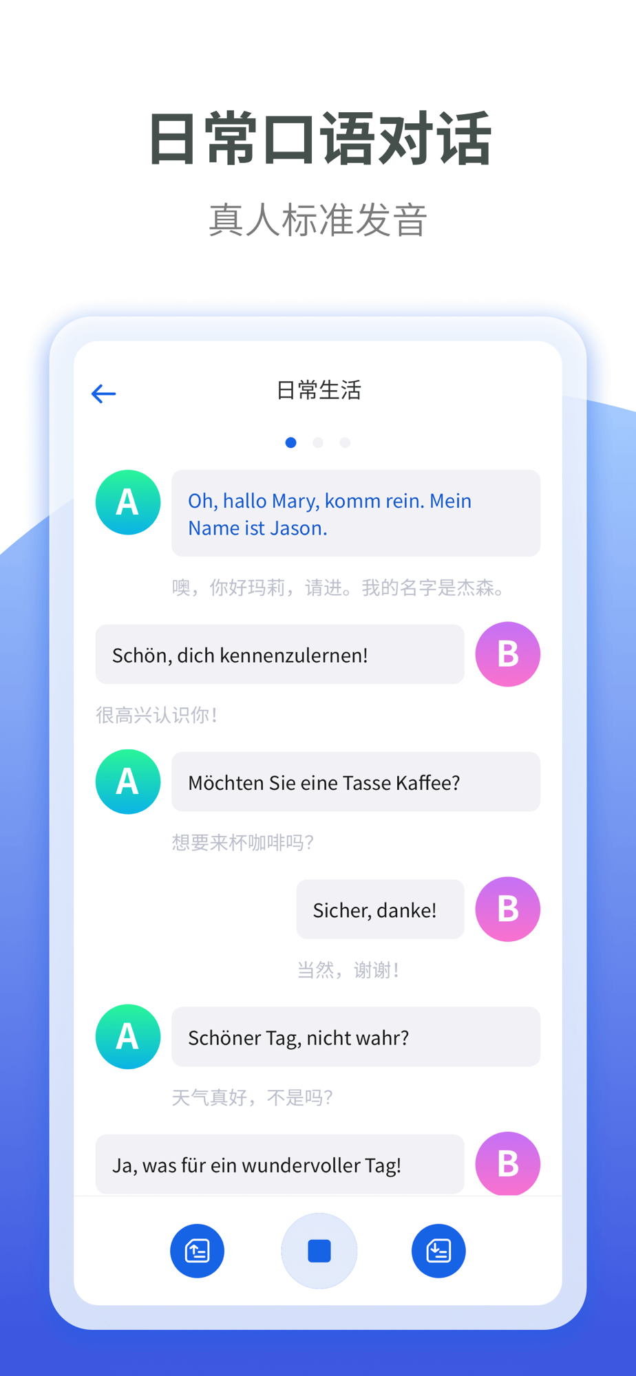 2. 德语老师真人教学: 由留学日本,教学经验丰富的专业德语教师实际教学,如同课堂的上课体验,让您学习精准的发音。