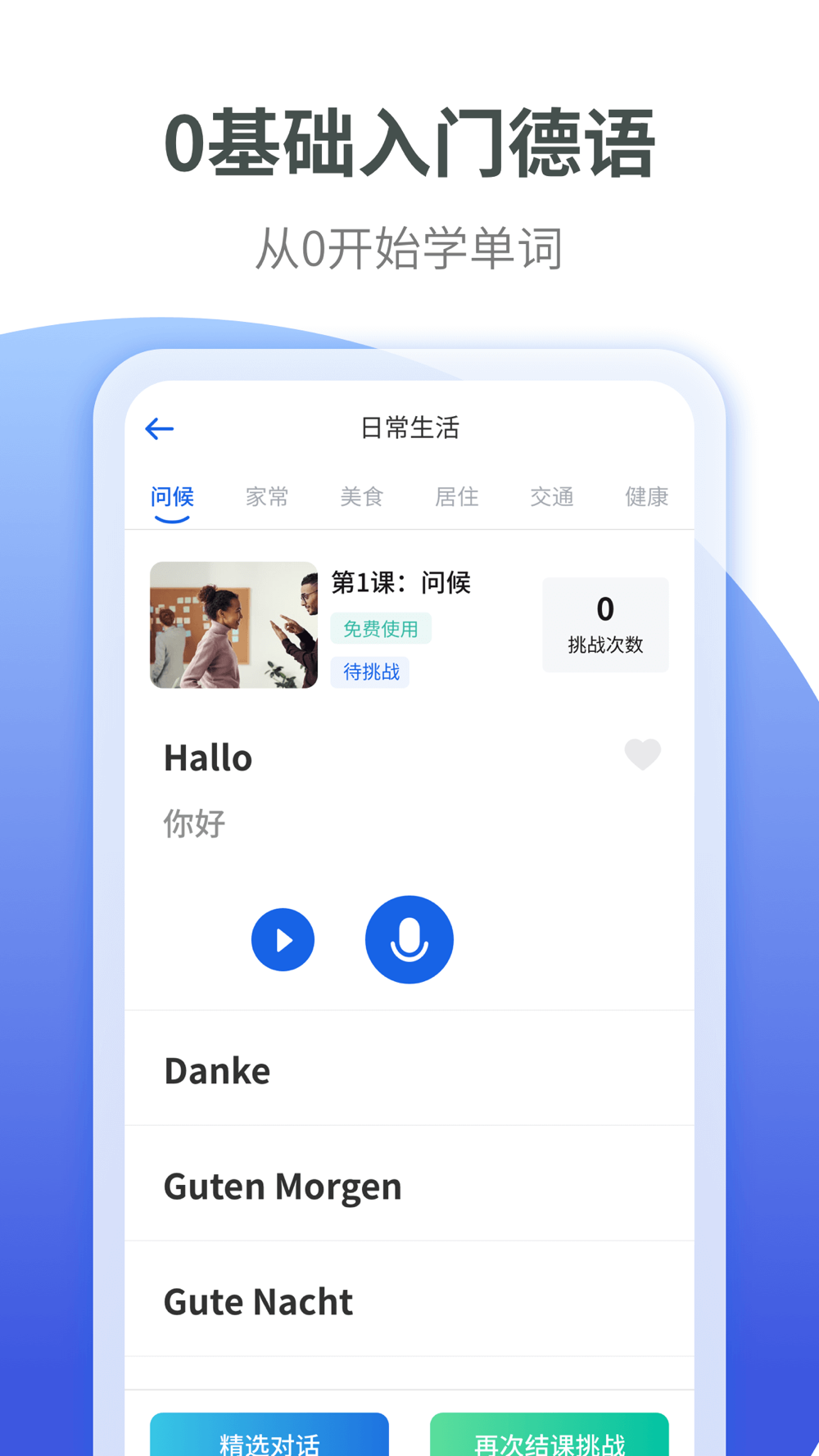 5. 通过常见的德语学习场景,从德语字母开始学习,匹配真人教学视频和德语翻译,用由浅入深的方式,实现靠自己零基础德语入门到精通。
