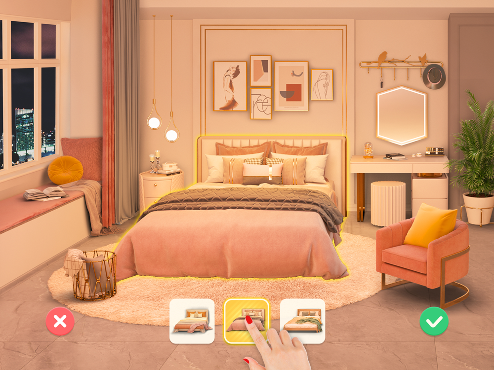 - 选择你喜欢的家具,放在相应位置,装饰出专属于你的房间,少女风,知性风,简约系~风格百变,随心设计~