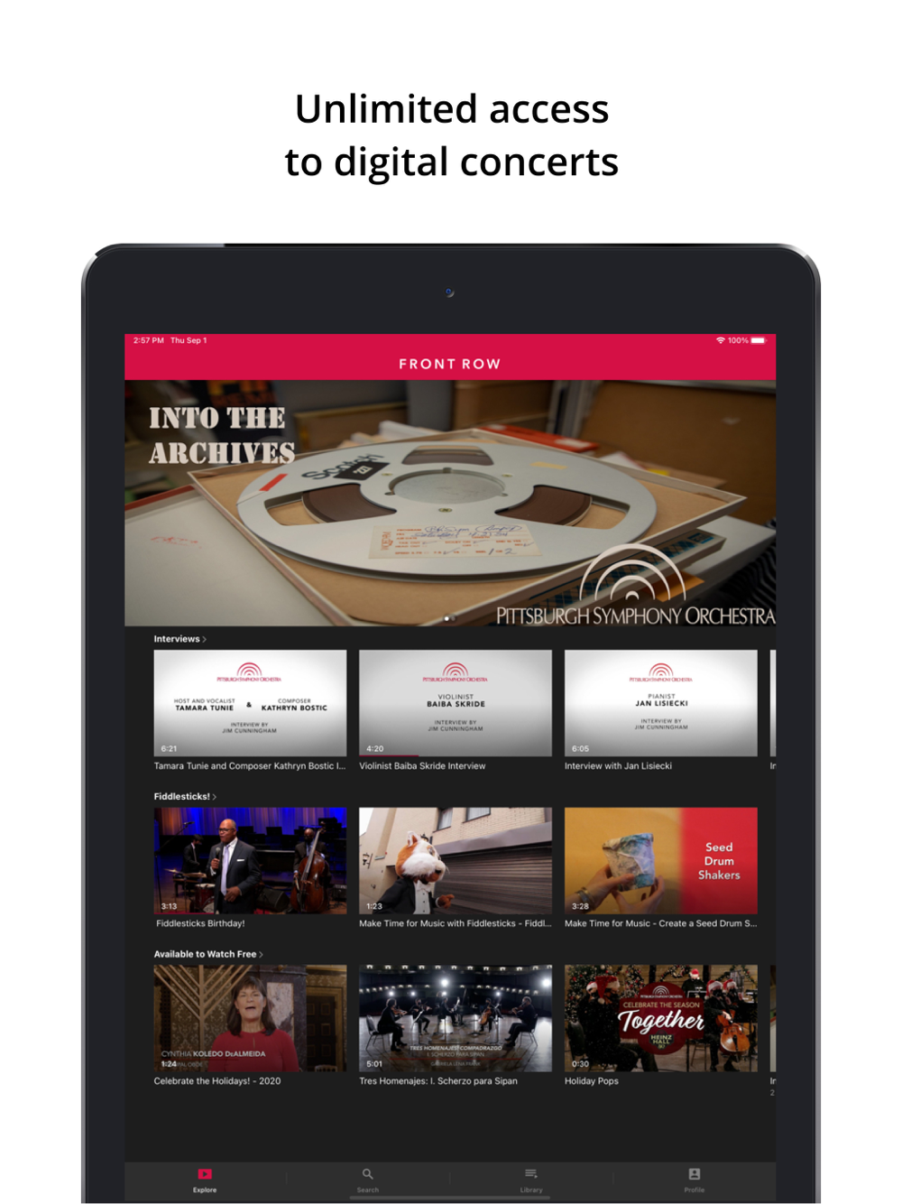 Experience the power of music with the Pittsburgh Symphony Orchestra. Front Row subscribers have unlimited access to digital concerts featuring your PSO musicians, musical legends and the voices of today. No matter where you are, it’s all brought to you in one convenient location.