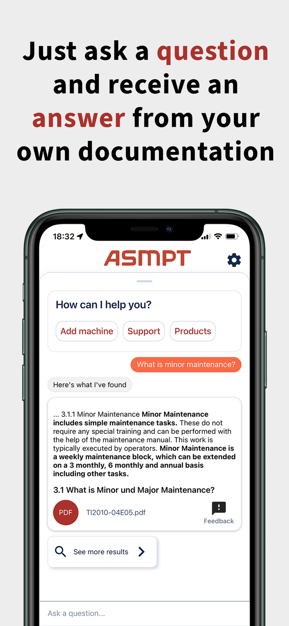 This app gives ASMPT users access to all their machines' information through one single natural-language interface. Simply ask a question in your own words and tap into the whole of ASMPT's institutional expertise!