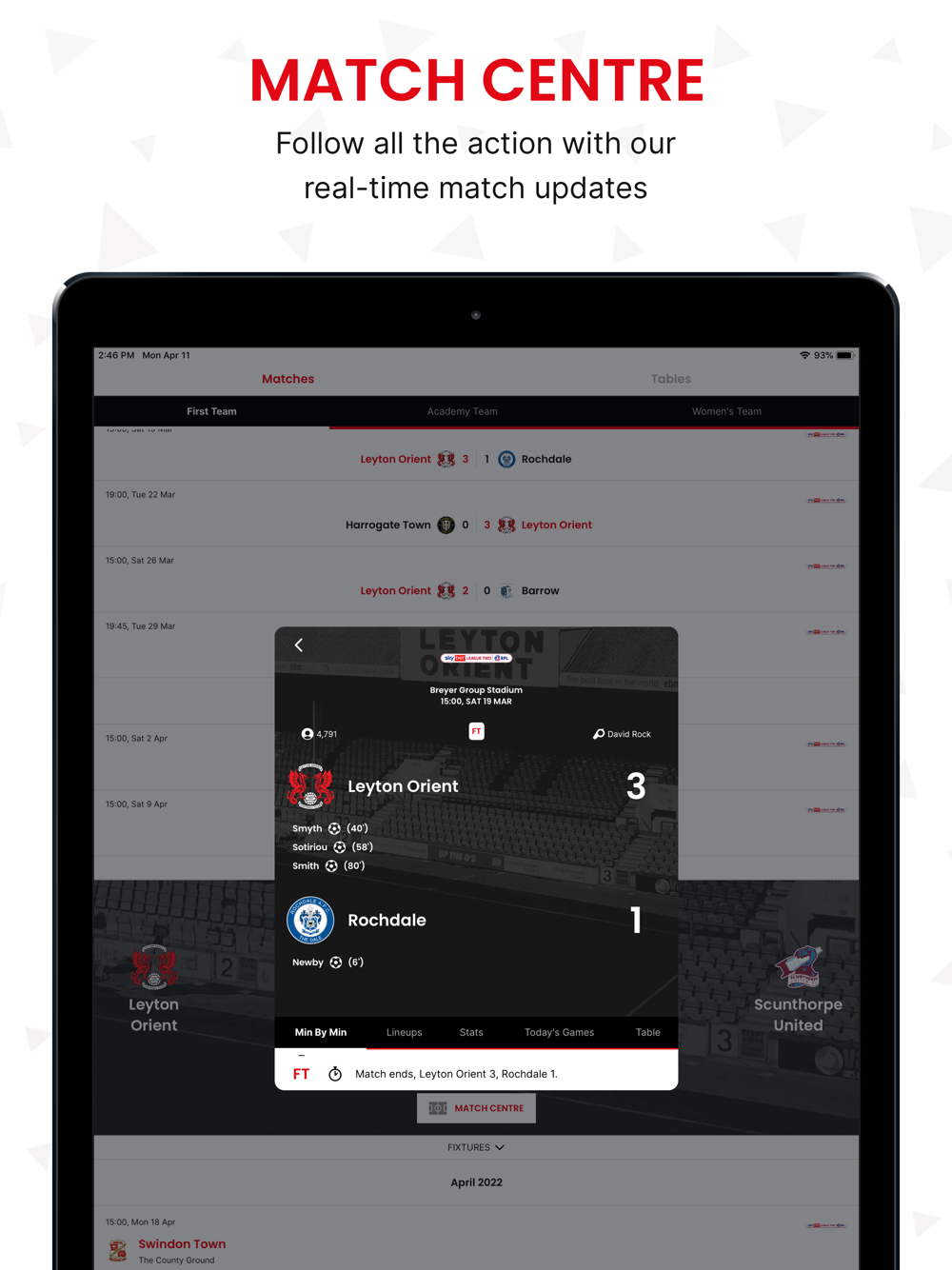 Enable push notifications to receive updates straight to your device for all things Leyton Orient!