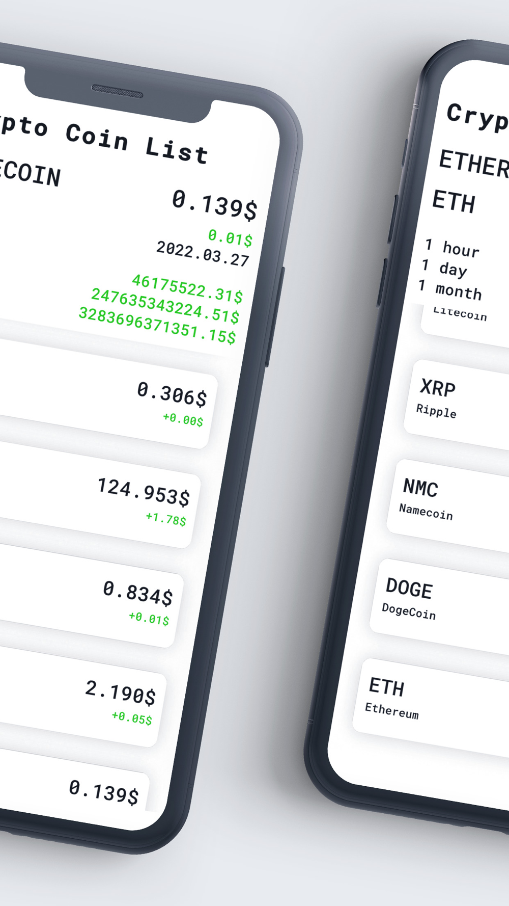 Our application contains popular crypto coins, for which you can get detailed information, such as: