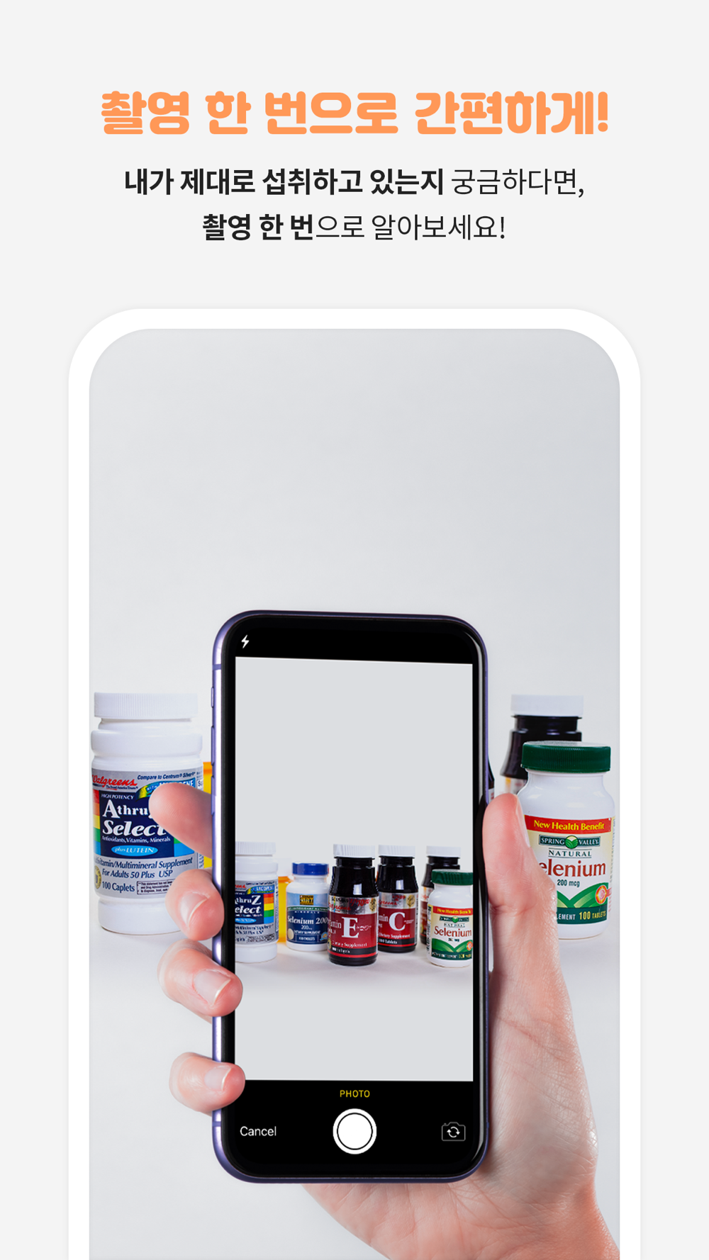 사진 촬영 한번으로 여러분의 영양제 조합을 평가해드립니다!