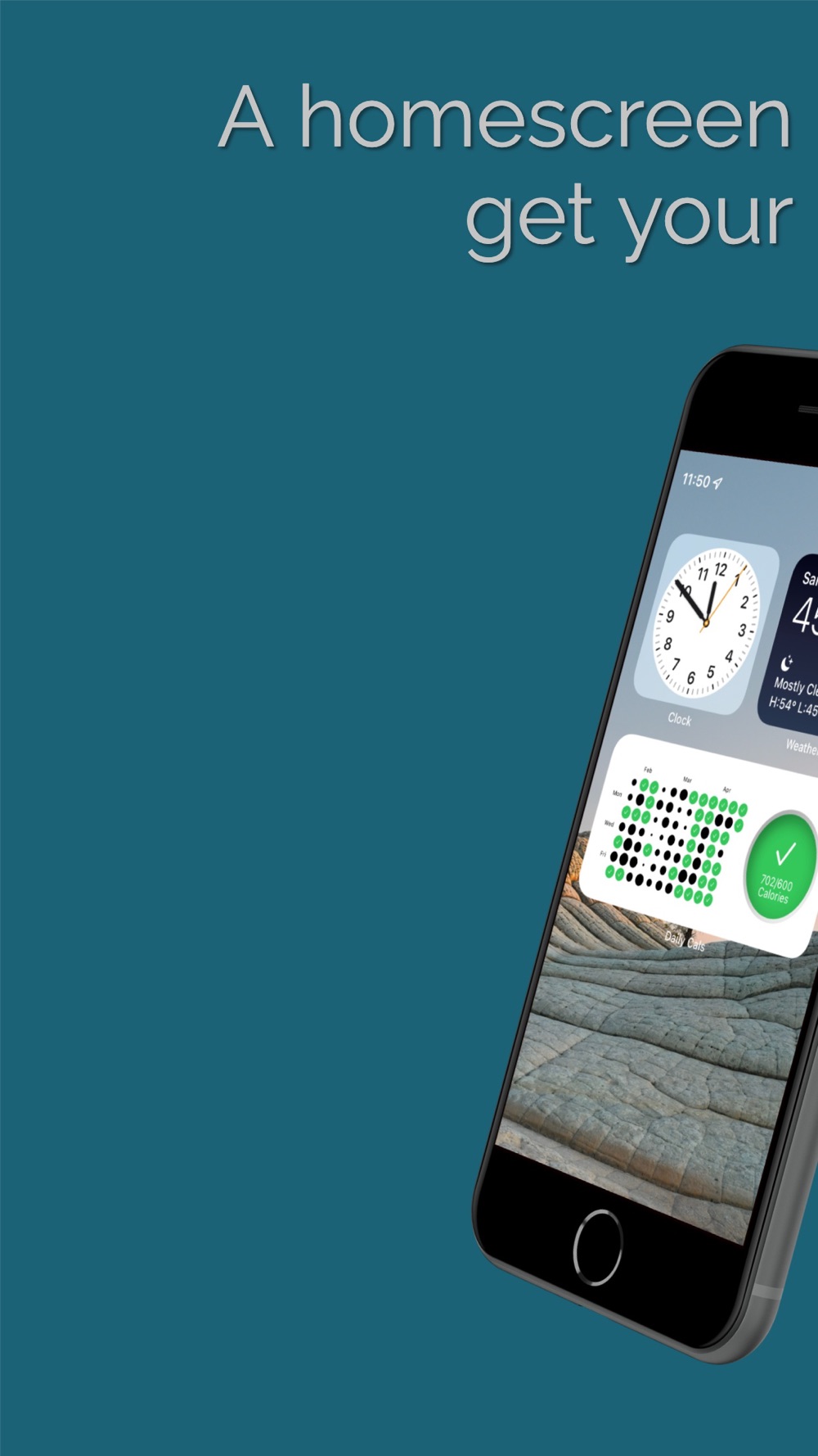 It's a stylish widget that visualizes your step and calorie counts when you hit or miss your goal. Accumulate multiple days in a row at your goal and get as long of a streak as you can get.