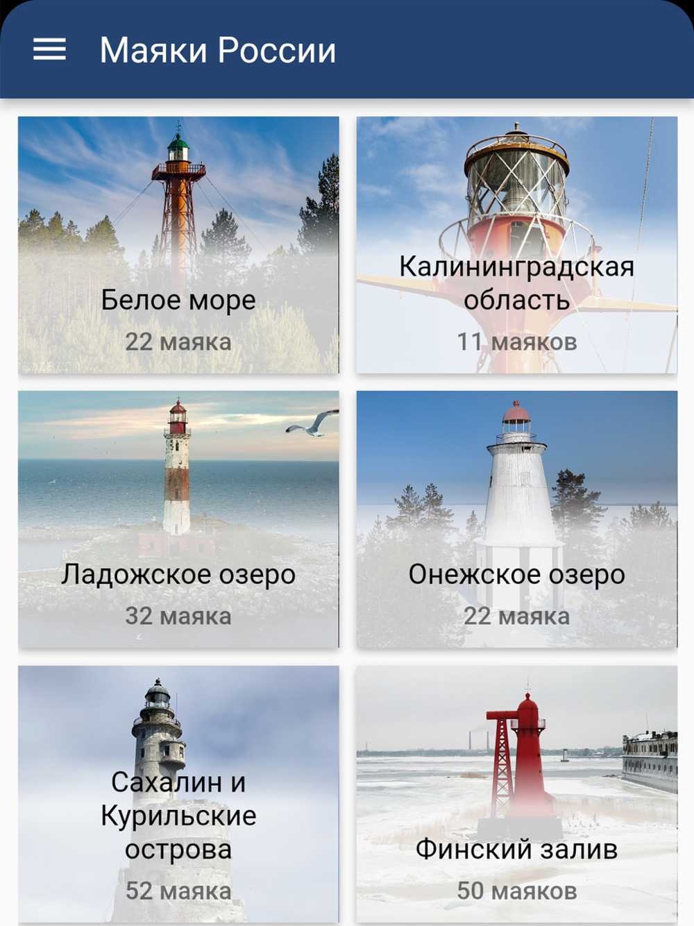 Данное приложение познакомит вас с наиболее интересными маяками России. Удобный функционал позволит вам узнать основные характеристики маяка, прочитать его историю и даже проложить путь к нему в вашем любимом навигационном приложениии.
