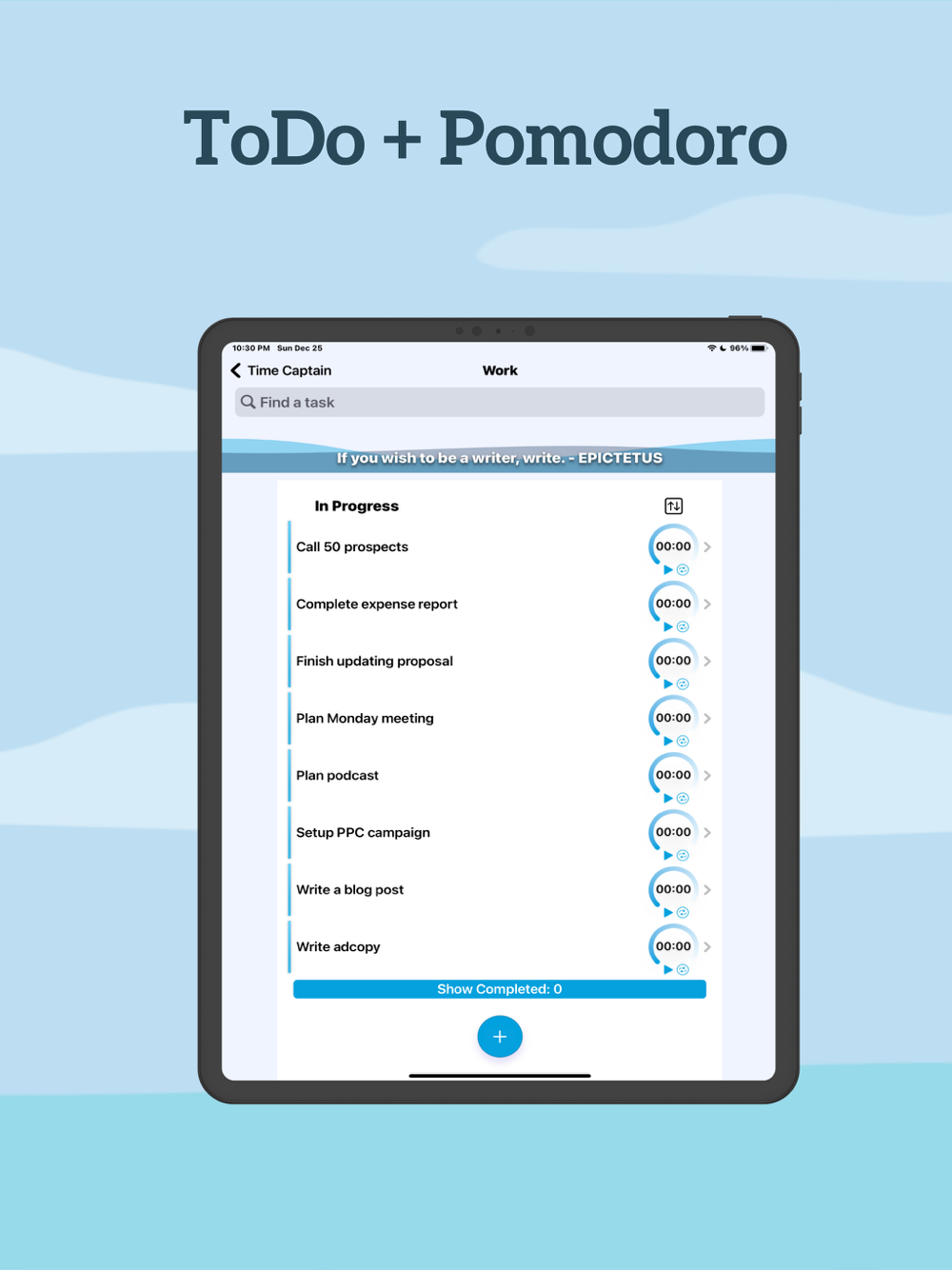Whether you need a laundry timer or countdown widget for vacation, work, school, or home, Time Captain offers pomodoro style focus techniques to help you organize and develop good daily habits and track them over time using the new todo analytics widget.