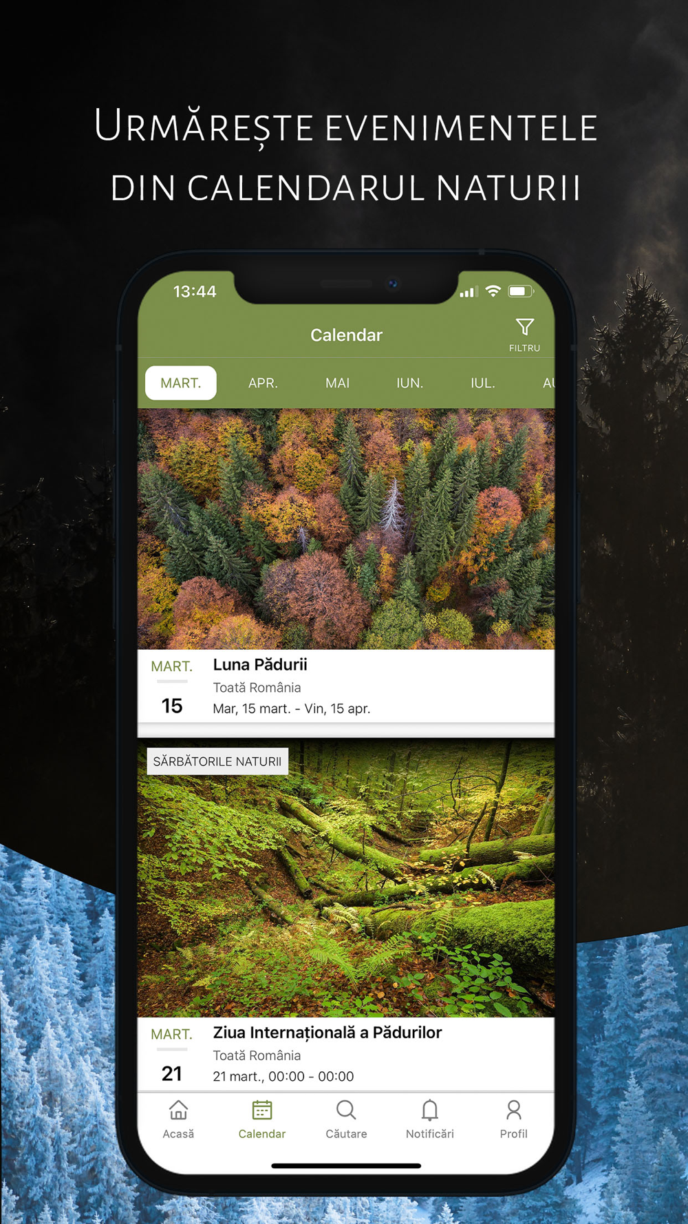 - Urmărești calendarul naturii, unde o să regăsești cele mai interesante evenimente naturale, cum ar fi: rotitul cocoșului de munte, migrația de primăvară sau toamnă, perioadele de înflorire ale anumitor specii de flori, boncănitul cerbului și multe altele;