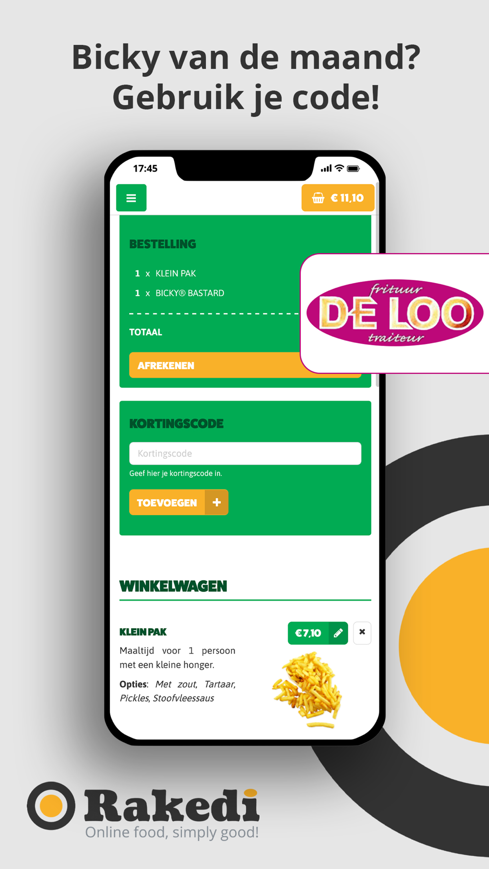 Bij Frituur De Loo hebben we heerlijke frietjes en hamburgers. Bestel online via onze app.