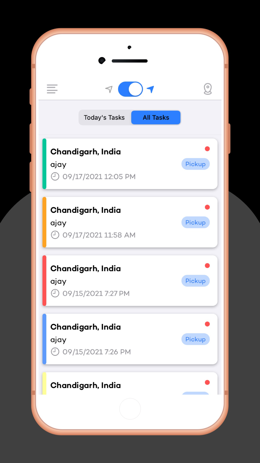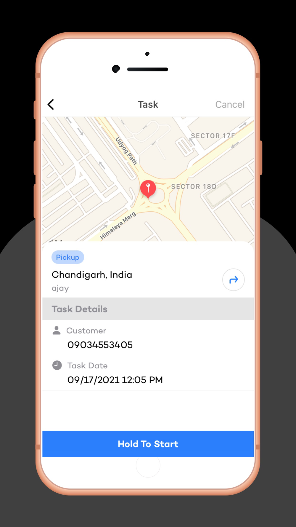 The order will show on the driver's app; here the driver will accept or reject the pick up of the order after this was accepted they would see as the information regarding of the customer's order (name, phone number, address) and delivery details (address, etc.).