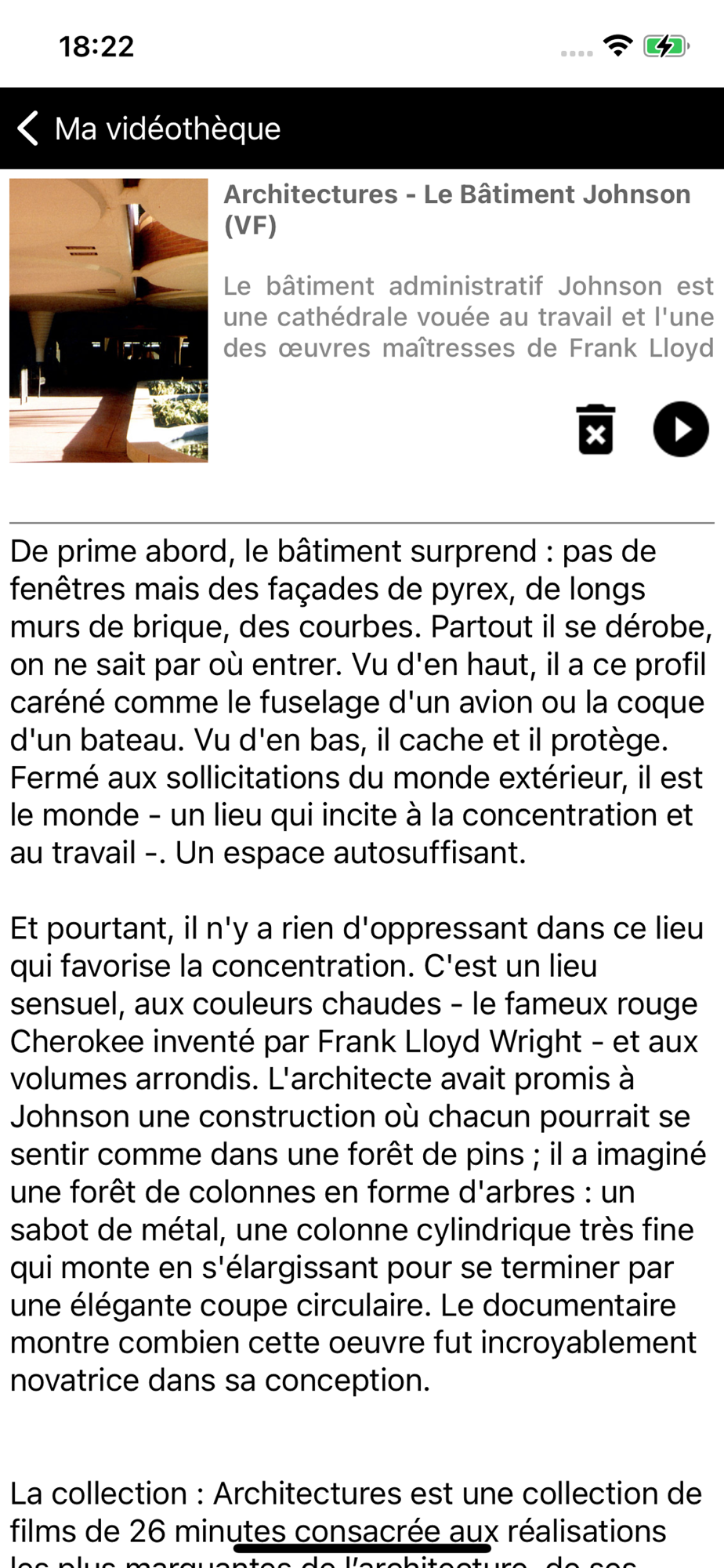 Cette application est destinée aux utilisateurs d’ARTE Campus. Elle leur permet de visionner les vidéos préalablement sélectionnées sur le site. Les vidéos peuvent être visionnées en streaming ou téléchargées pour permettre un visionnage en mode offline, sans connexion Internet. Les vidéos sont disponibles en versions française et, pour une partie du catalogue, en version allemande, anglaise, italienne et espagnole, ainsi qu’avec des sous-titres sourds et malentendants.
