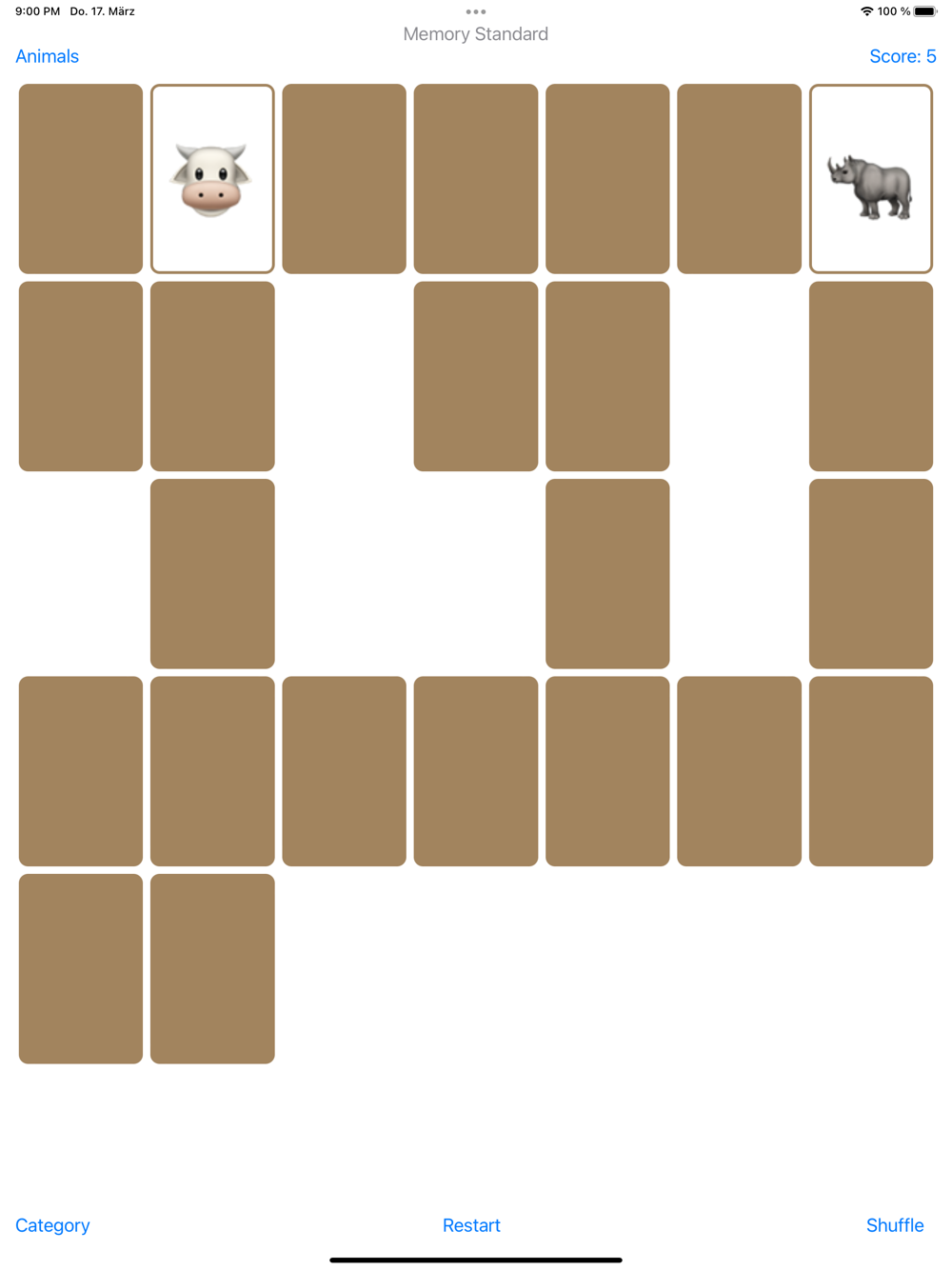 The aim of this game is to turn over all the cards one by one and find the same ones. There are only two identical cards in each deck. When you find a match, you get a point for each identical card, meaning you get two pints for a pair of matched cards. Your score will be deducted by one point, for every previously seen card that is involved in a mismatch.