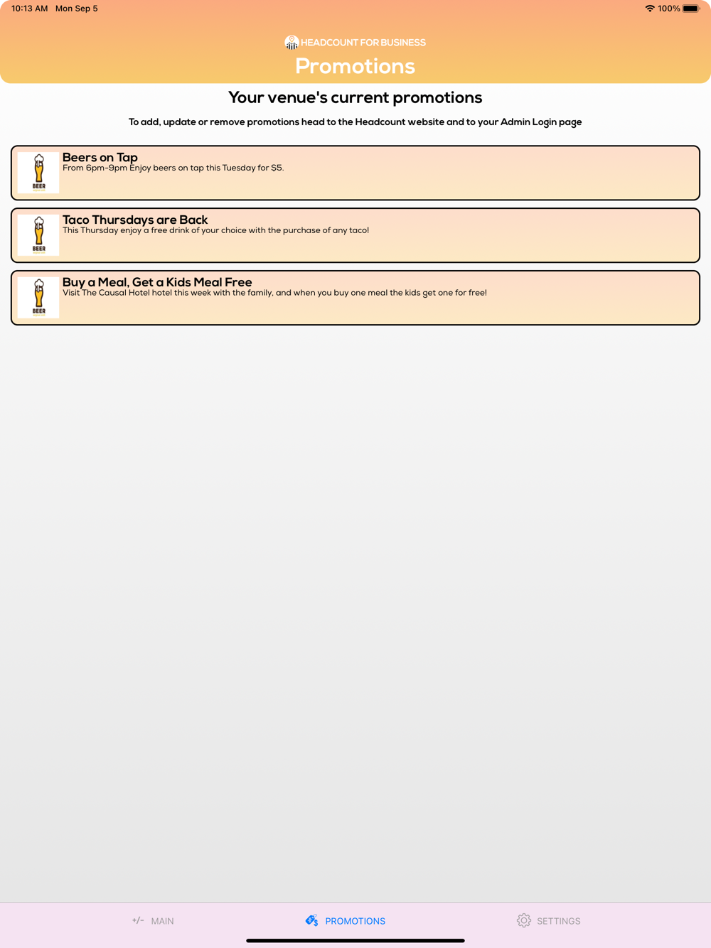 The smartphone application for business use. Using their login they can easily add and subtract attendance as well as view settings and promotions previously added to their account.