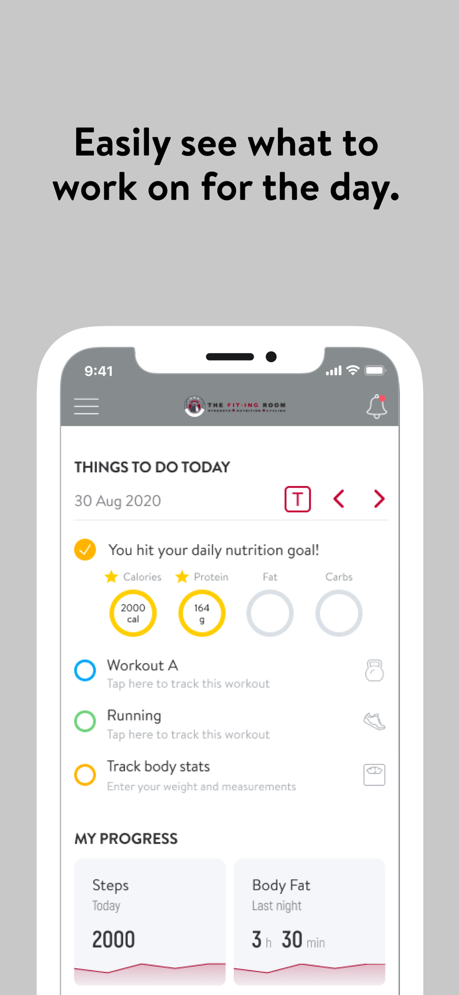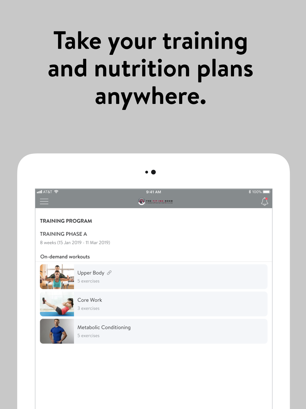 With The Fit-ING Room App, you can start tracking your workouts and meals, measuring results, and achieving your fitness goals, all with the help of your personal trainer.