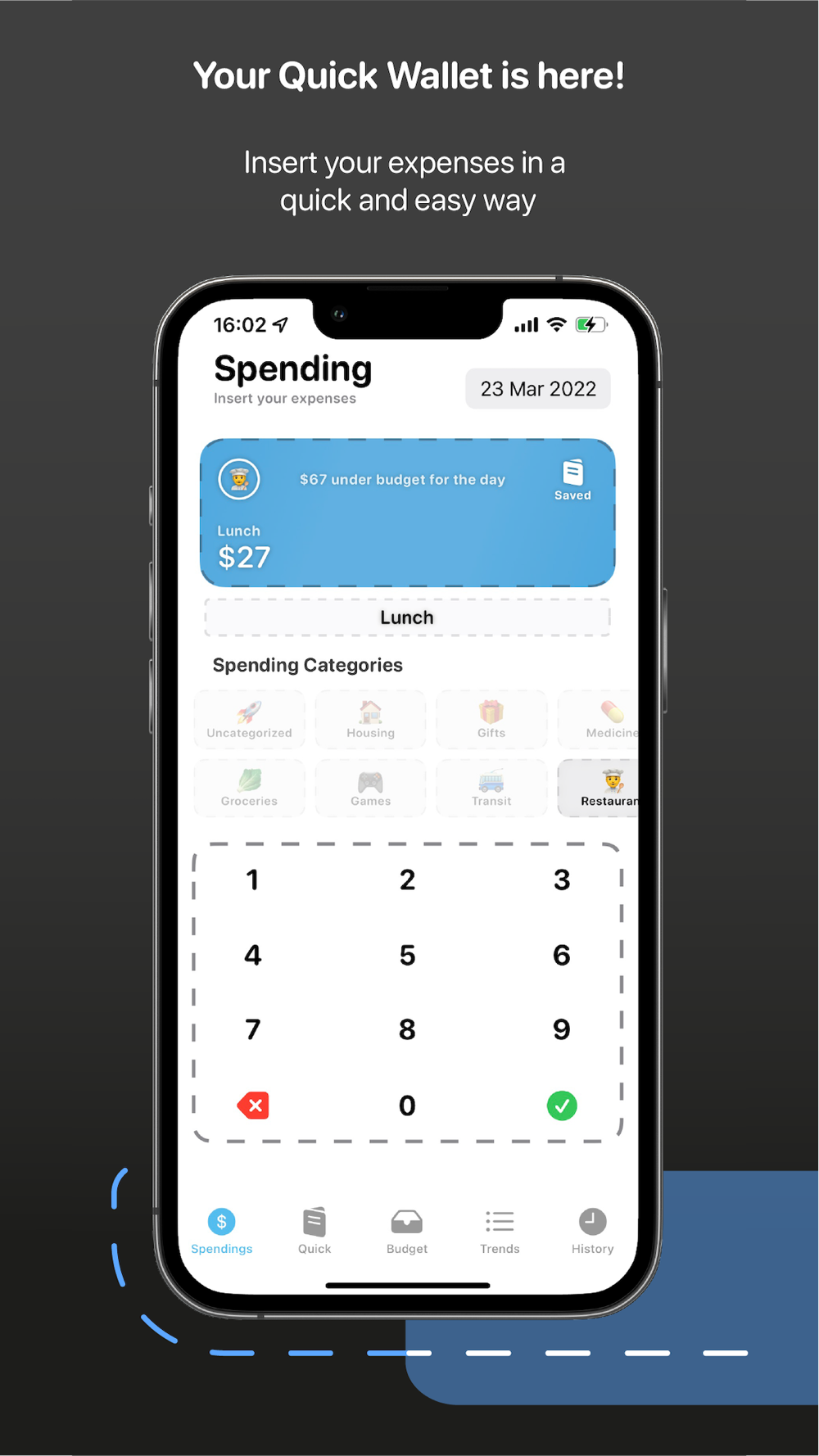 Your Quick Wallet is here! Welcome to Quilet, a brand new way of inserting expenses, tracking budget, visualizing trends of your money and being in control of it.