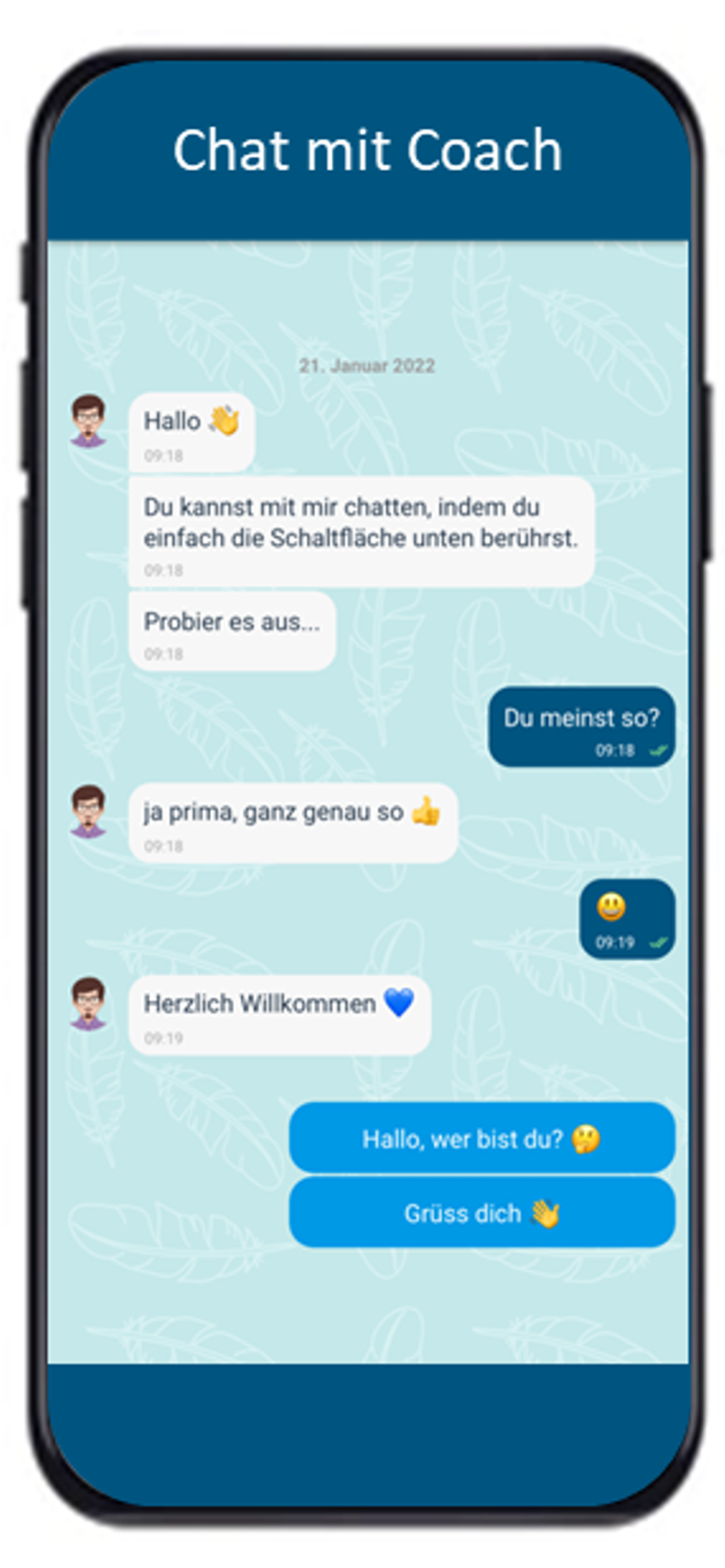 - Machen Sie einen Schritt nach dem anderen: Lassen Sie sich von Ihrem digitalen Coach anleiten und motivieren und setzen Sie sich Ihre persönlichen Ziele. Verdienen Sie sich nach jeder Lektion Belohnungen und erreichen Sie Ihr persönliches Ziel in einer selbst definierten Zeitspanne.