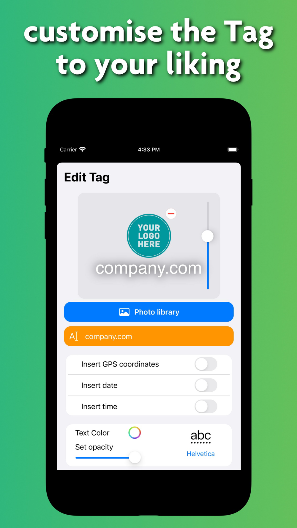 You can even choose transparent PNG logos from your Photos library and use them as logos for your Tags.