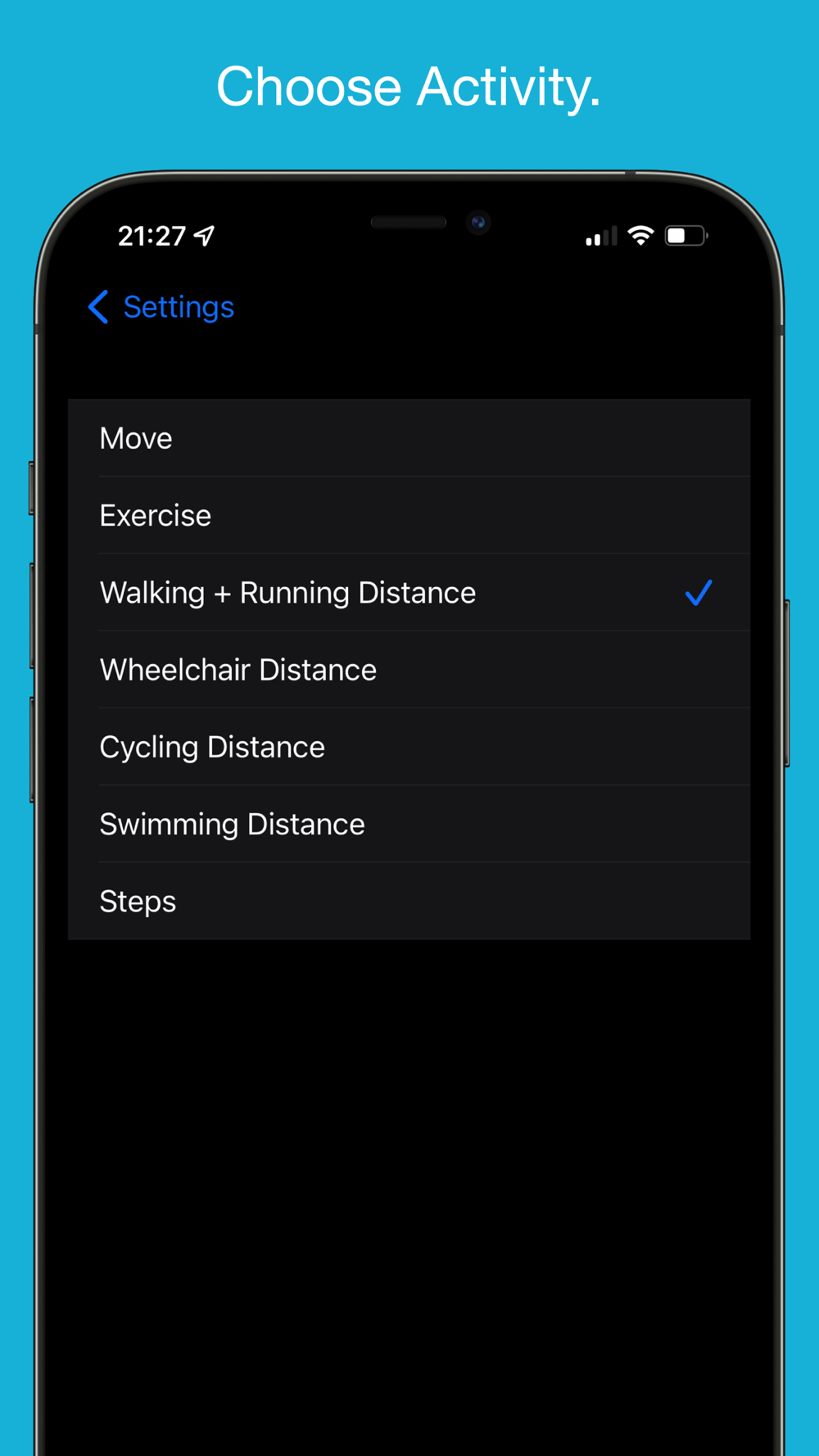 Activities integrates with Apple Health app to be able to show a progress ring so each day you can see if you are on target for the month and a bar chart showing each day amount compared to the goal each day.