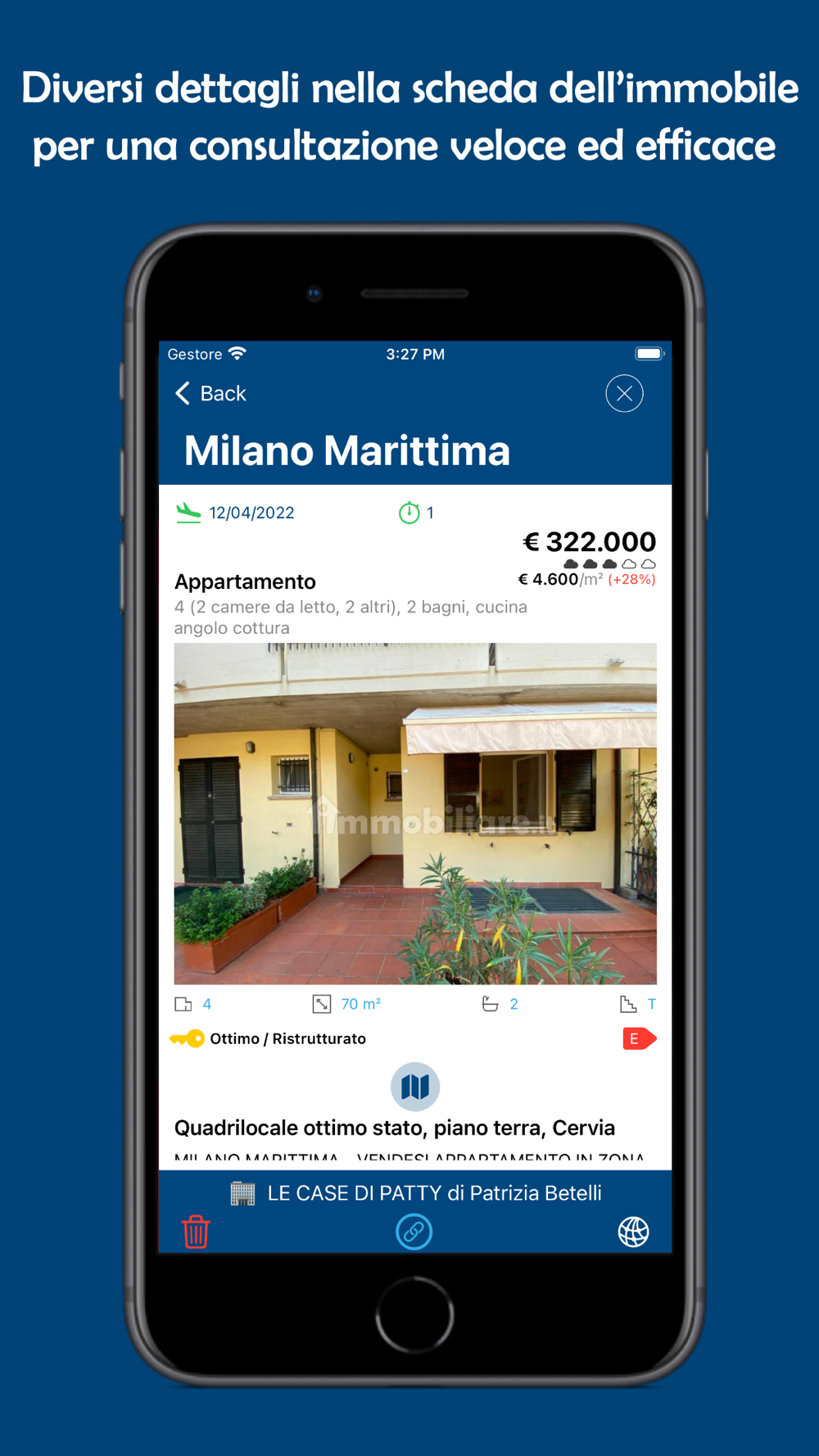 Organizzazione degli annunci: le caratteristiche e il valore di mercato degli immobili mappati sono velocemente rilevabili tramite l’uso indicatori di scostamento grafici (icone e colori)